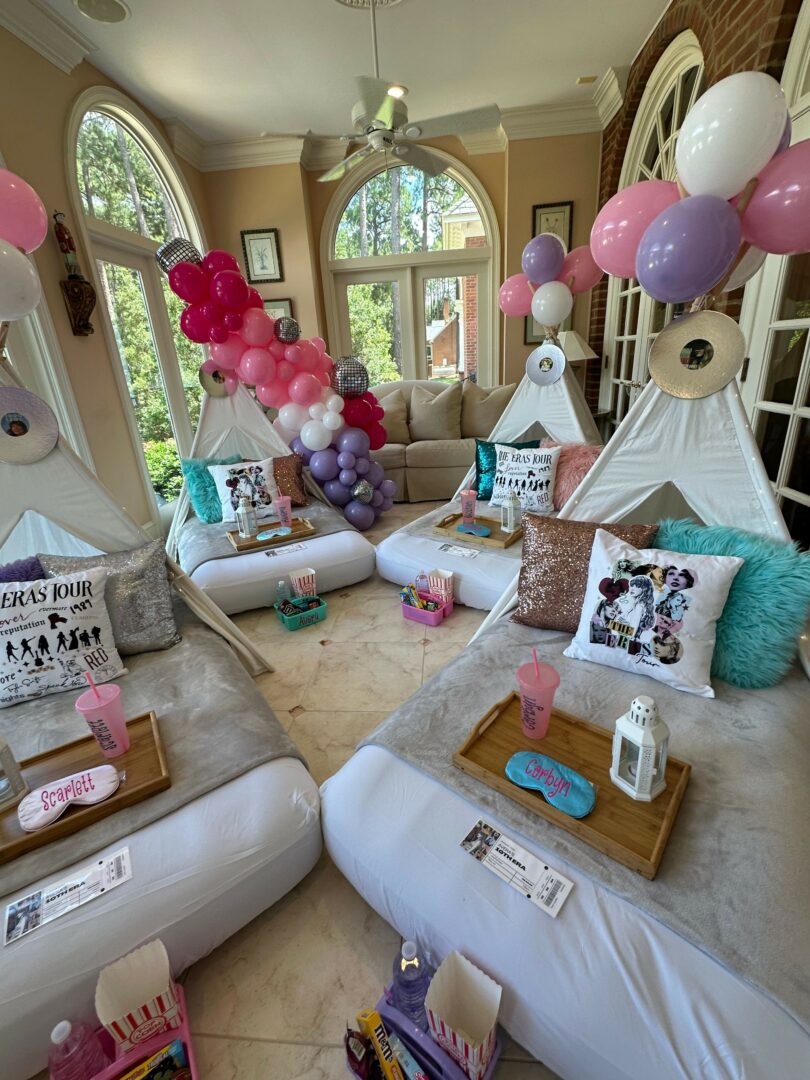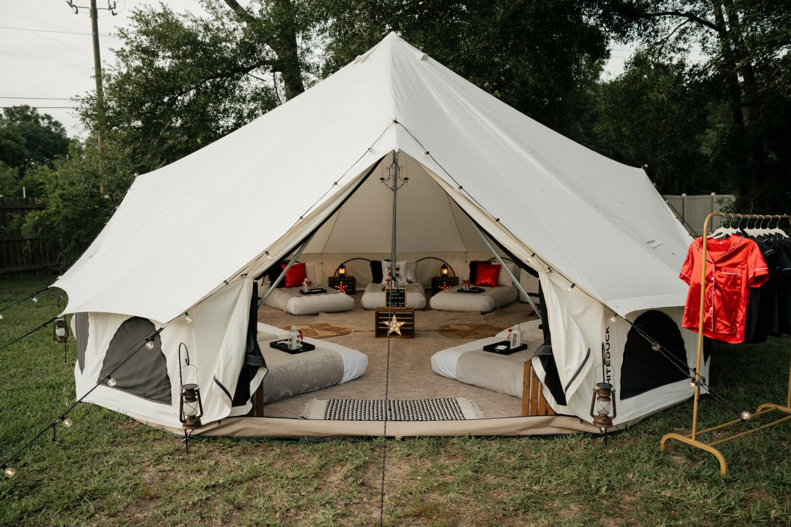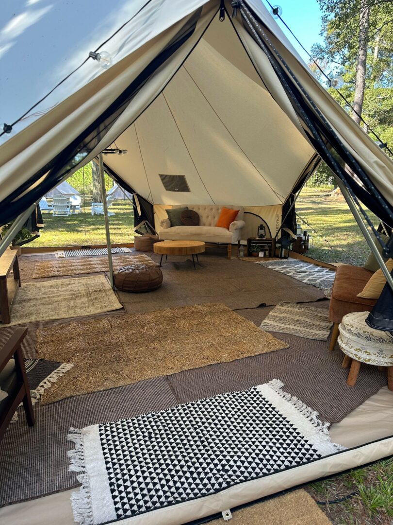 When we started Under the Stars Glamping Adventures, we just wanted to get people camping. We wanted families to spend time together, disconnect from busy their lives, and reconnect over s’mores and campfires. By providing our glamping experiences, people could enjoy tent camping without having to worry about having any equipment, the lengthy set up, or the exhausting clean up. As we began to promote our business, we realized that there was a need for our services that went beyond just camping in the woods. We started to have inquiries for birthday sleepovers, dinner parties, and weddings, As people made requests for colors, themes, and set ups, our services began to cater to these needs and the types of adventures available began to grow. We now provide indoor teepees for those who want to stay inside. You can have luxury picnic in or out of the tent. We provide luxury movie nights for backyards and local community centers. Our tents have been used for yoga retreats, sound baths, bridal showers, groomsmen’s suites, guest accommodations, spa parties and more! With a fleet of 15 outdoor bell tents and 40 indoor teepees, we are here to create whatever dream you have for an adventure under the stars.