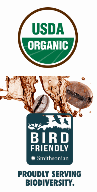 We offer ethically sourced, direct trade Arabica coffee; USDA Organic Certified, Smithsonian Bird Friendly Certified