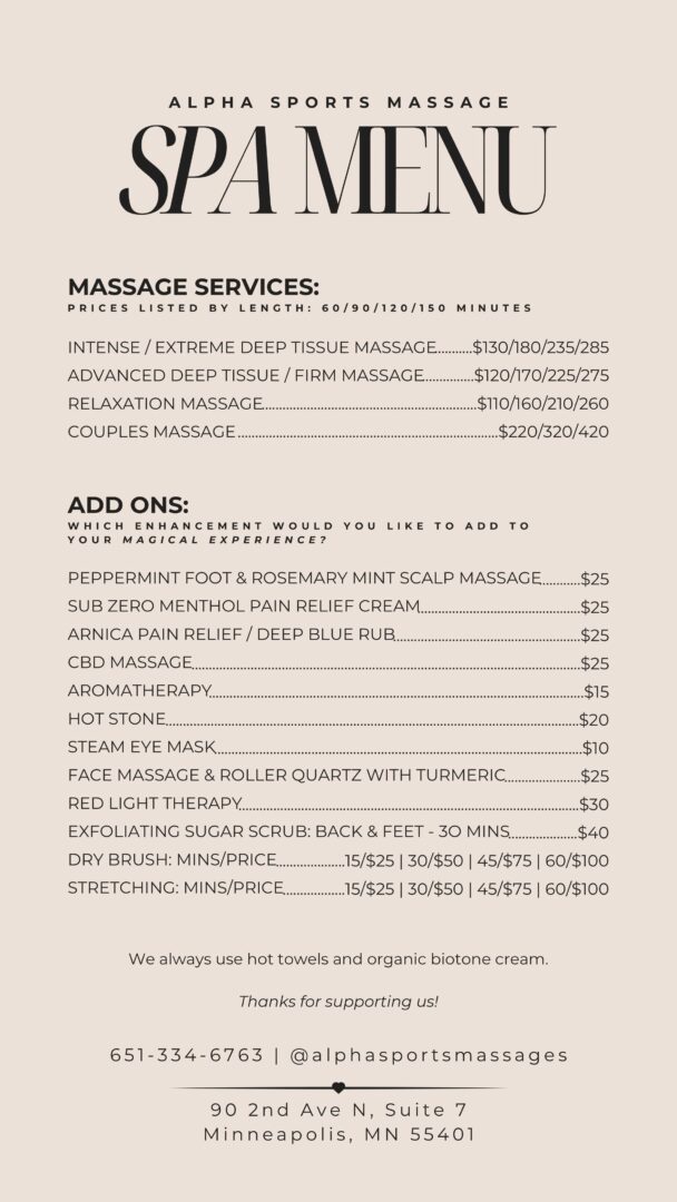 - Instagram: @alphasportsmassages