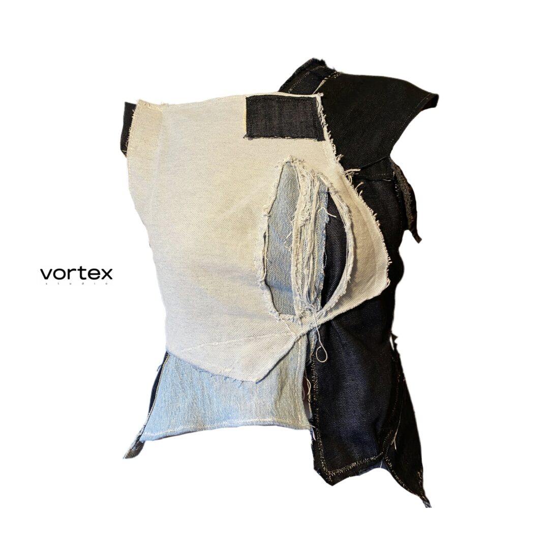 I started my professional experience as a graphic designer and visual communicator. After graduating as a master in Fashion Creative Direction, and living in Barcelona for a year, I decided to turn myself almost exclusively into Fashion, setting my own clothing brand VORTEX STUDIO (@vrtxstd). Focusing on the process of upcycling, and following the premises of the ‘anti-fast-fashion’ model, with each piece created I aim to turn useless into unique, sewing one-of-one garments that are wearable, irreverent statements of the cause.