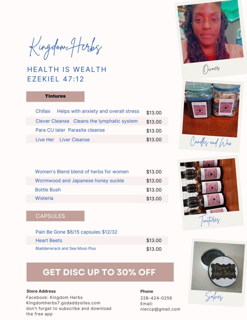 - Facebook: Kingdom Herbs/Chaniece Parsons