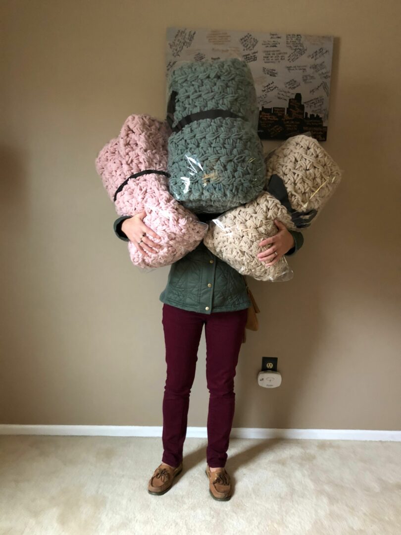 My creative business began in my college apartment in 2011, I called it CraftyInCollege. Back then I made jewelry holders from chicken wire and thrifted picture frames. In 2013, I changed the name to FaithLoveCraft. One day, my boyfriend wanted a beanie hat he saw online. It was crocheted. I had never crocheted anything before but I told him I would make one for him. I taught myself by watching YouTube videos. From that point on, I really never stopped crocheting and have gone on to sell hundreds of Cozy Blankets, my most popular crocheted item, and write and sell multiple crochet patterns.