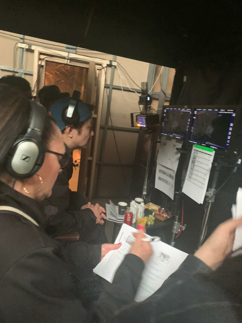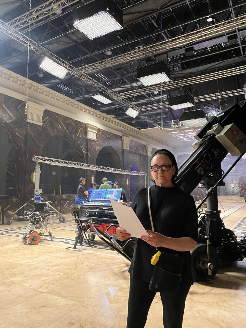 Cheryl on set in Spain with Samsung