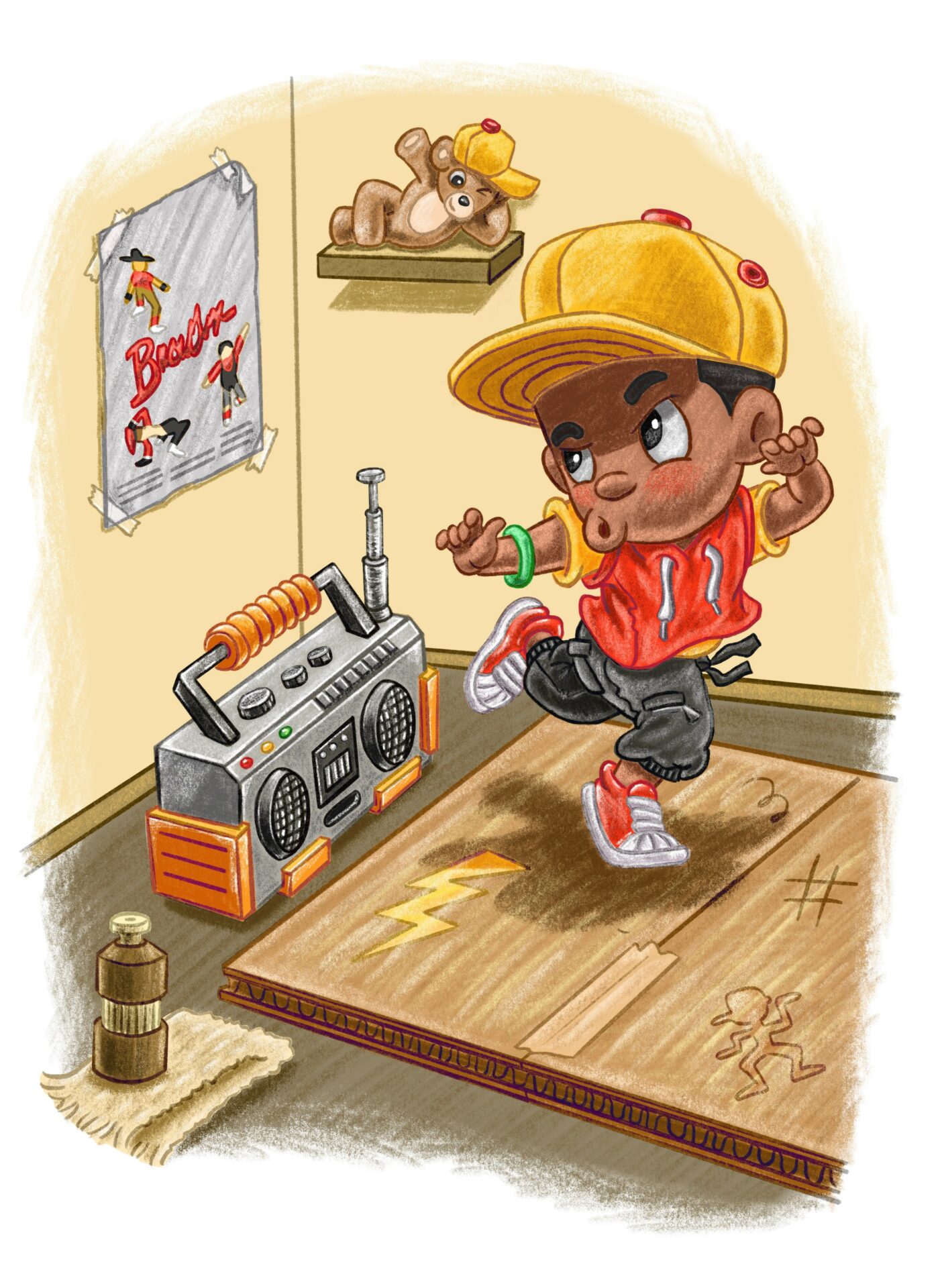 I recently wrote and illustrated a book with dancer/actor Michael Chambers (Breakin’ Movie) called “Lil Boogaloo Shrimp and the Clean Sweep”. It bridges the gap between adults that remember the 80’s and kid’s today. It promotes priority and responsibility using breakdancing and also highlights its debut in the 2024 Olympics.