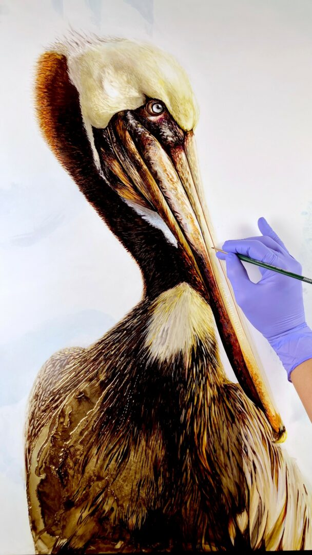 2. “Dawn” 24X30″ (Brown Pelican by Claudia E. Benton)