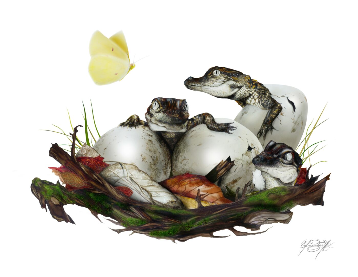 5. “Chirping” 24X30″ (three hatchling alligators by Claudia E. Benton)