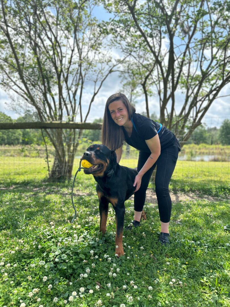 Just before my 21st birthday, I adopted a new puppy, Rusko. I had never been allowed to have a dog as a kid, and was ecstatic. My enthusiasm was quickly met with behavioral challenges of a working breed (cattle dog to be exact) and that’s where my journey truly began. We did every local training class available and nothing helped me with his reactivity, nipping, and overall chaos- the results were bandaids at best, and did not teach him functional or reliable skills. His behavior remained so bad that one of the trainers even told me that most people would have dumped the dog at a shelter. That statement gave me the motivation to pursue what quickly became my passion- helping dogs make real changes in their mindsets and behavior so that their families can enjoy them, and they can genuinely enjoy life better, too. I’ve since spent over a decade seeking out the best of dog training, learning under some of the world’s best trainers, to give all the dogs and owners, I work with the best life. Rusko has remained the biggest “why” behind the work that I do, and I’m lucky enough to still have him by my side. Both of my human babies get to spend a part of life with him, too, which I’m incredibly grateful for. Of course since having them, they are now a huge driver behind my daily motivation and discipline. True dog training is a very demanding job, but I wouldn’t change it for anything.