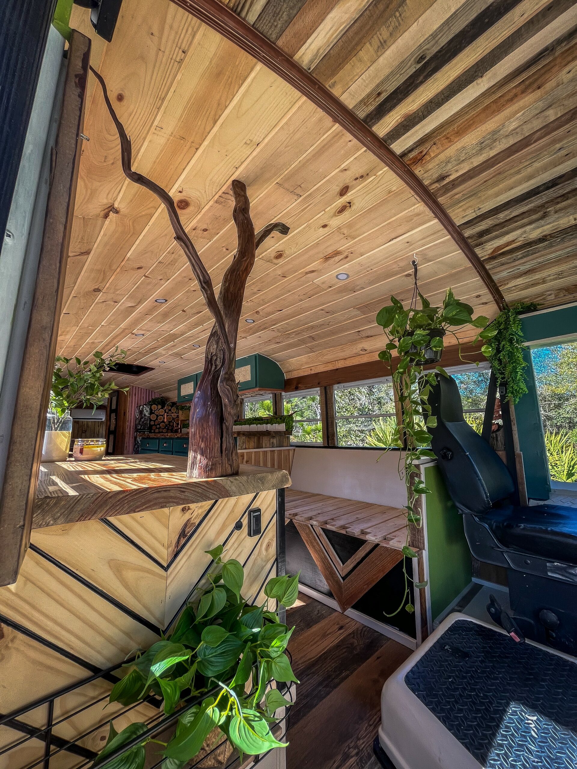I got down to Florida and immediately started to look for a place that we could do this build. My sister had no experience with building but I was determined to teach her. She lived in a townhouse so we couldn’t do the build there but I already had a ton of connections down in Florida that I asked online. This couple that I had met on the road had a property a couple hours north and said that they had space for us to do the build. They even had their already converted bus on the property and even offered for us to stay in their bus while we were out there doing the build. They had a house there so the bus was open for us to stay in. The way things were manifesting for me made me feel like all of this was coming true. We booked out first clients for Nomadic Homes and I used the remaining couple thousand dollars that I had from the bus sale and bought all the tools we need. In the next four weeks we made the announcement, we were booked out the entire year. Every Sunday we would take the 2 hour trip north to work on the bus and then every Friday we would drive back down to Clearwater to reset. It was amazing to see the confidence I thought I never had when I started working. I could do things I thought I couldn’t do and it was the most empowering feeling. I was resilient. The bus was coming out beautiful! Cassidy also became a great builder and was learning really fast. I even hired another woman-builder that lived in a bus to help. I wanted the business to represent we as women.