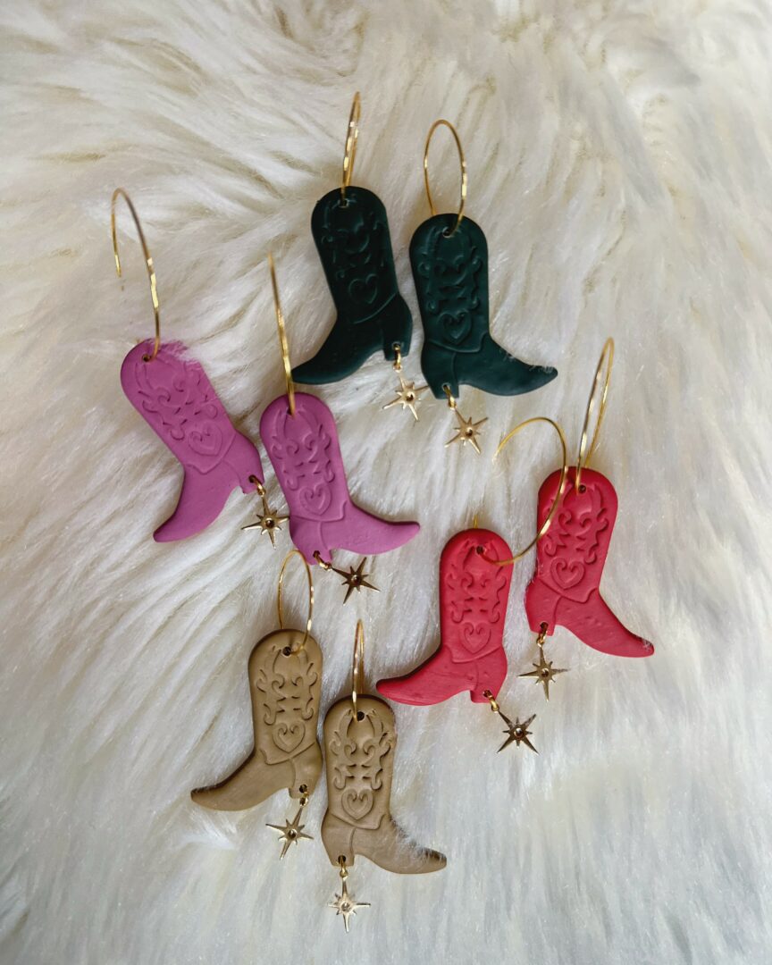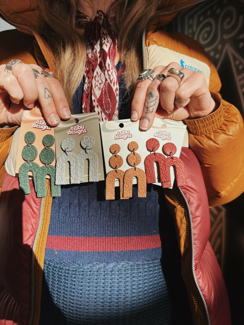I mainly make polymer clay earrings that are big, lightweight & loud! I also paint murals on the inside & outside of homes (and hopefully someday a business or 10!), do custom painting on clothing like ski onesies or denim jackets/pants, and have fun experimenting with new ways to express myself creatively. I dropped out of art school after 2 years to focus on humanities and comparative religions, and the last decade has been a journey of finding balance between those sides of myself. I have definitely shifted from trying to change the world and burning myself out, to trying every day to make my neighborhood, larger community, or one person I meet at the grocery store’s day better. I’m easy to find in a crowd but hard to pin down. I often delete Instagram from my phone for my mental health, so if you want to get in touch, please email me or fill out the custom form on my website! I will still keep my instagram updated with events.