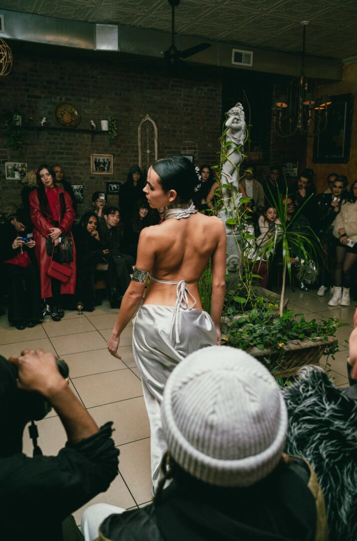 VALENTE New York fashion week walk/silver dress photos: