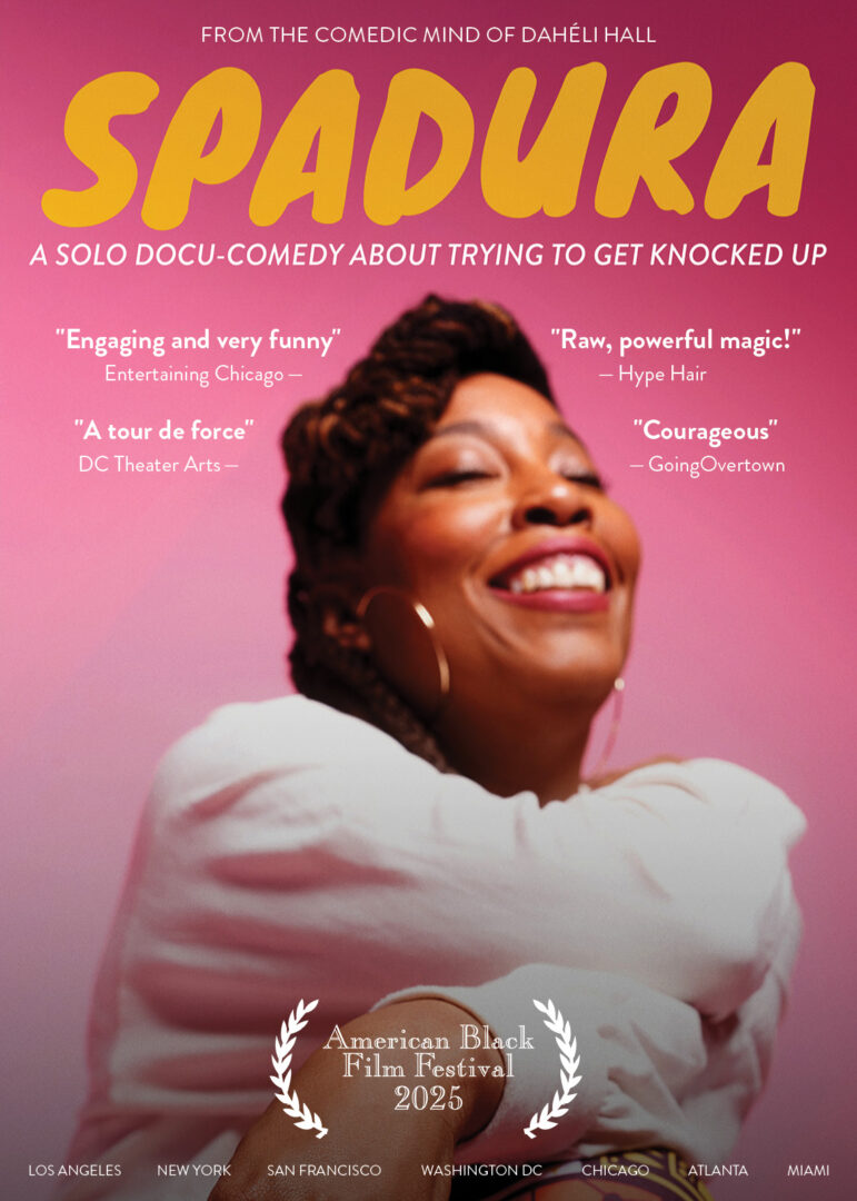 I’m a writer, performer, and director who uses comedy to crack open tough conversations — especially around identity, womanhood, aging, and all the beautiful mess that comes with being human. One of the projects I’m most proud of is my solo show SPADURA, a raw and hilarious exploration of the baby industrial complex. We’ve been touring SPADURA independently for a few years. What started as a stage show with my brilliant producing partner Elizabeth Yng-Wong, has now grown into a docu-comedy feature film — thanks to our ever-expanding team of badass creatives. Last month, we premiered the film at the American Black Film Festival in my hometown of Miami, which was incredibly special.