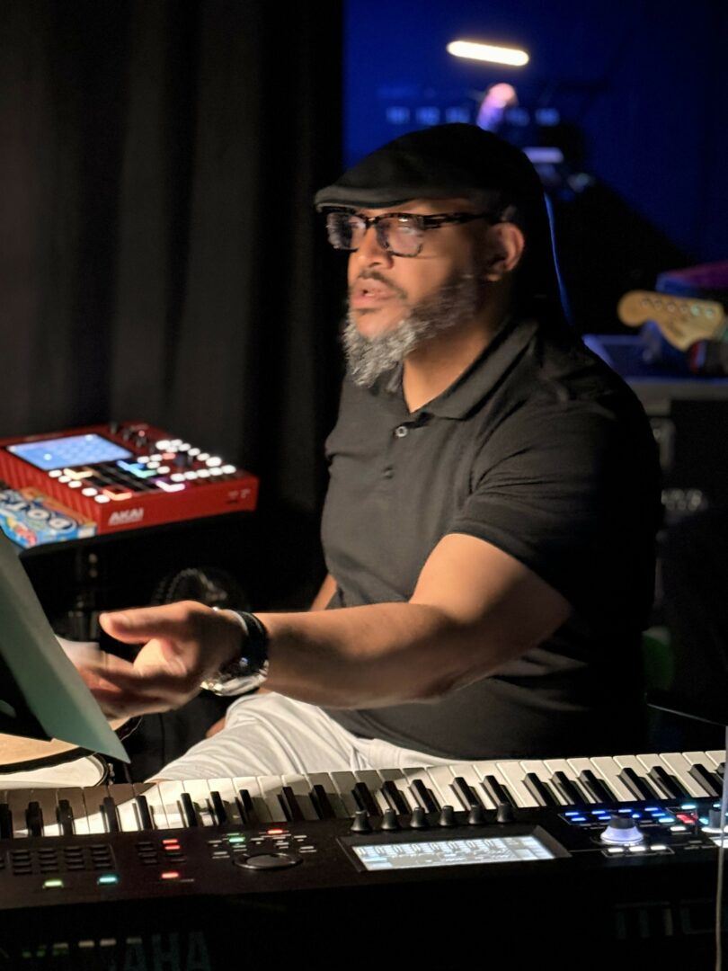 I am a multi-instrumentalist. I play drums, piano, saxophone, and bass guitar. I have been playing music since I started playing drums at the age of 3 (which would be about 47 years now). I took piano lessons and played sax in band, but I taught myself drums and bass. Playing in church is what really helped me to learn the instruments and what their roles are in the music. This led to me becoming a producer… putting all of the elements together to make a whole piece of music.