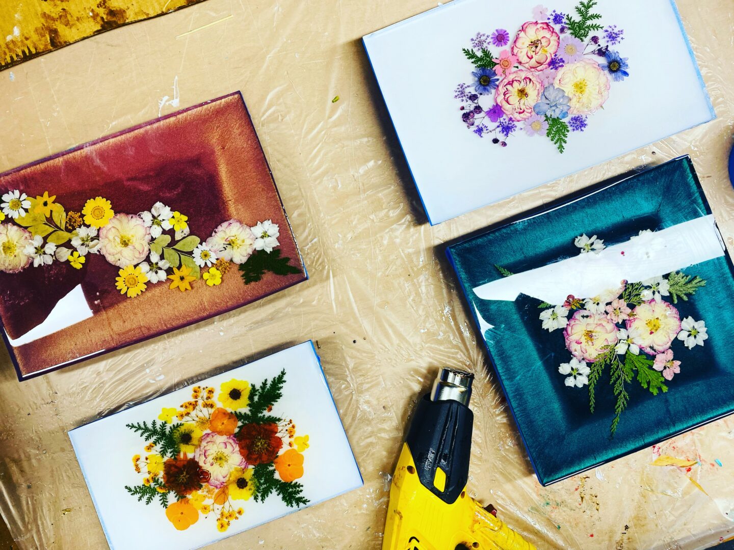 I call myself an accidental artist. In March of 2020 while the world was plunged into a collective trauma delt from an invisible and terrifying pandemic, my job as a bartender was non-essential so our venue closed. At that time I was at one of those cross roads where I was no longer happy with my job and where I was at in life, so I took that time that we were closed and tried to keep myself busy with art and taking online classes. I hadn’t really touched my creative side for about 20 years but one day while drinking a middle of the day, covid margarita creation and scrolling through Instagram I was inspired by a resin artist. The algorithm caught on quickly and from that point on my social media was inundated with other resin artists and their beautiful creations. So inspired by Instagram and tequila I began my resin and art journey. My love for nature and our beautiful plantet or “Big Mama” as I like to call her, has further inspired the direction my art has gone. I feel so fortunate of this silver lining that the pandemic brought to me but am not blind to the fact that it was a very dark time for a lot of people. I love creating beautiful works of art that make people happy and have also guided resin classes in an art as therapy type of setting. Because seeing art and creating art can invoke so many emotions, being able to use it as an outlet for those emotions and showing people how to help channel those emotions into something beautiful can be such a gift. I believe that everyone has a creative side and sometimes we could all just use a little guidance sometimes to find those things within us that we don’t know are there!