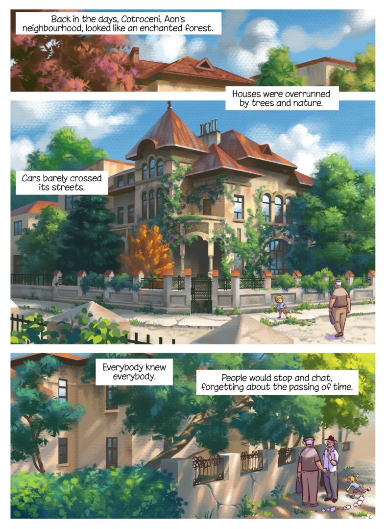 My longing for them merged with my longing for home — by then, I had been living abroad for several years — and with my yearning to return to the art of comics. Out of these intertwined emotions, a graphic novel began to take shape: a story about childhood, about loved ones who have passed away, about family, and about my native city, Bucharest. An autobiographical work. A family chronicle.