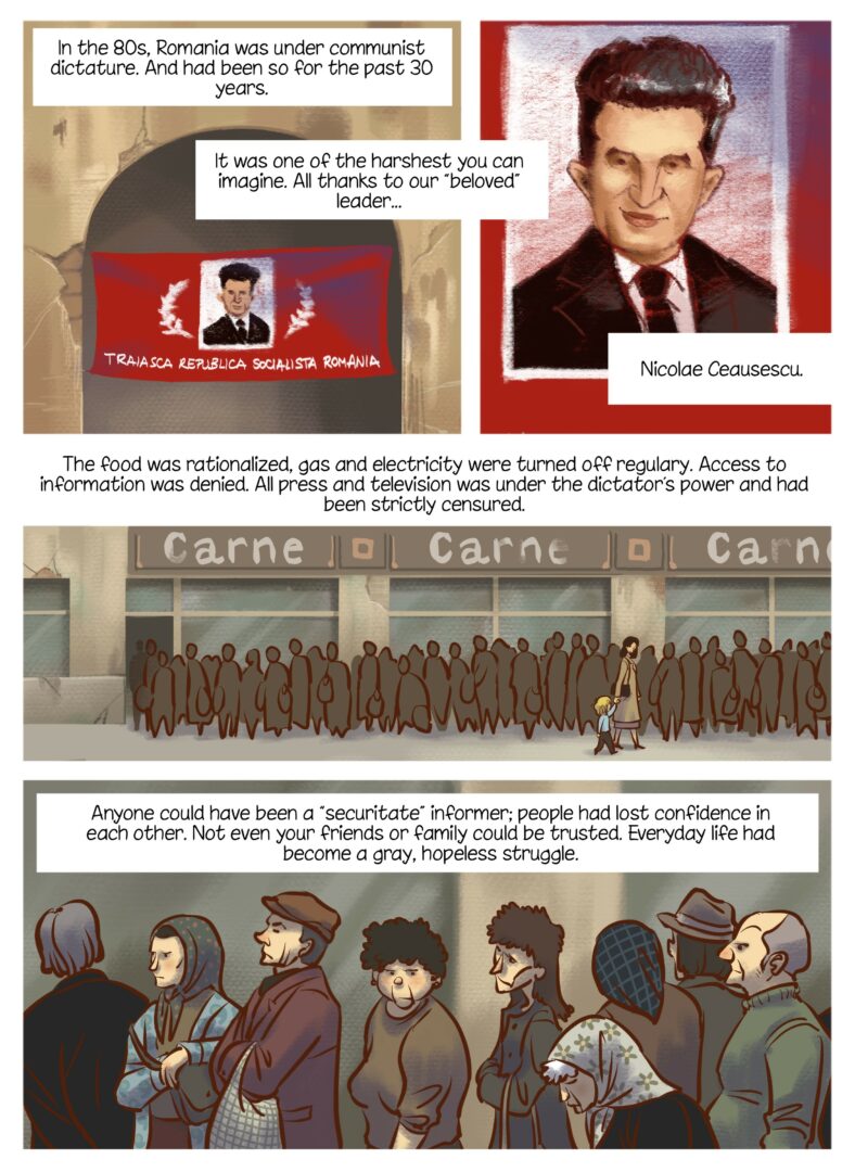 Being born in the early 1980s, I took the opportunity to depict what life was like during that period, when Romania was under one of the harshest communist dictatorships in the Eastern Bloc.