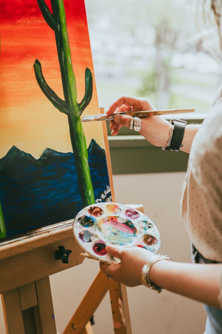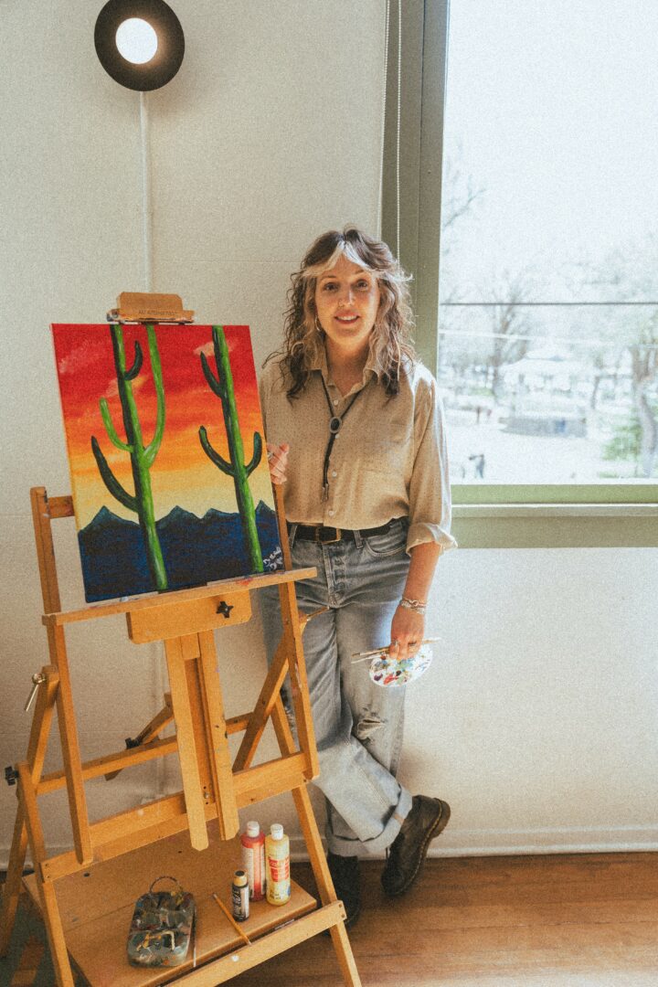 I’m a stay at home mama who runs a small mobile paint and sip business where I host monthly classes and private events. Honestly, I still can’t believe I get to do this for a living — people actually pay me to paint, and it’s the best feeling ever! I’m able to be home with my kiddos, have a flexible schedule and still bring in extra income for my family. It’s such a fun job, and I love getting to meet new people and connect with everyone who comes to class.