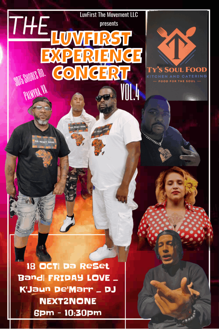 At this point of my life i don’t have much more to show. I used to make music and entertain for attention only. Now, I only make music and entertain people who are making LUVFIRST THE MOVEMENT a reality. I choose to entertain a community thats willing to build together. We have an annual fish fry. The community comes out and purchase plates. Their contributions turn in to a live concert right on their home turf. We just finished hosting our 4th annual LUVFIRST EXPERIENCE concert featuring Latin artist Friday Love and a GoGo Band named Da ReSet band. The year before at the 3rd annual concert we hosted 100 Poof GoGo band so future is bright. Communities are the reason. We’ve been spreading so much positivity throughout Virginia, North Carolina, and Georgia. When LUVFIRST THE MOVEMENT shows up people know what we are about before we can speak. We make sure our merchandise says it loud and clear everywhere we go.