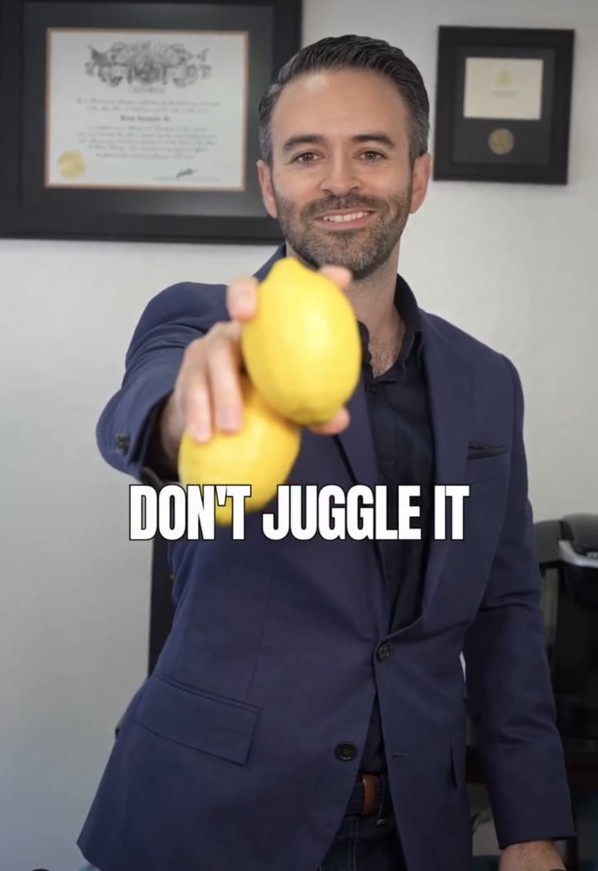 Within the dynamic field of legal practice, I find joy in the marketing and business scene. Crafting engaging videos, and social media content, and participating in TV interviews are the fun aspects of my law practice. For a firsthand look, explore the action on Instagram @davidarresq—a dynamic tour through the legal realm with a hint of humor in the legal hustle. The idea is to shake up the image of what a modern attorney is all about, making lawyers more approachable. And yes, every now and then, you might catch me juggling!