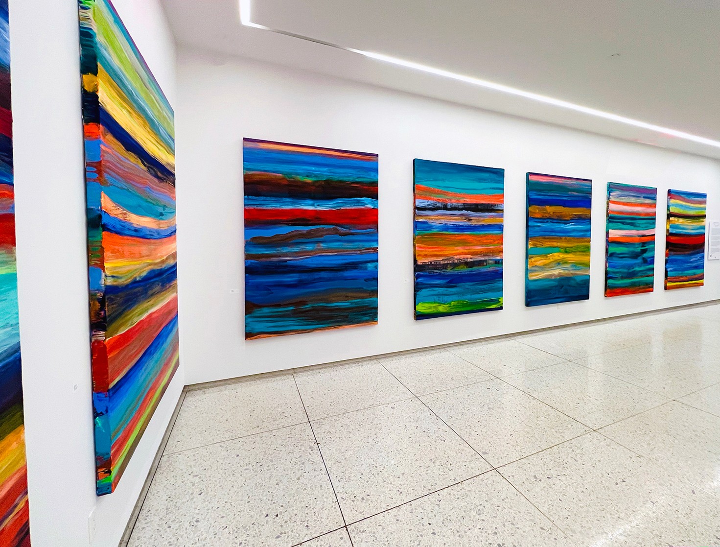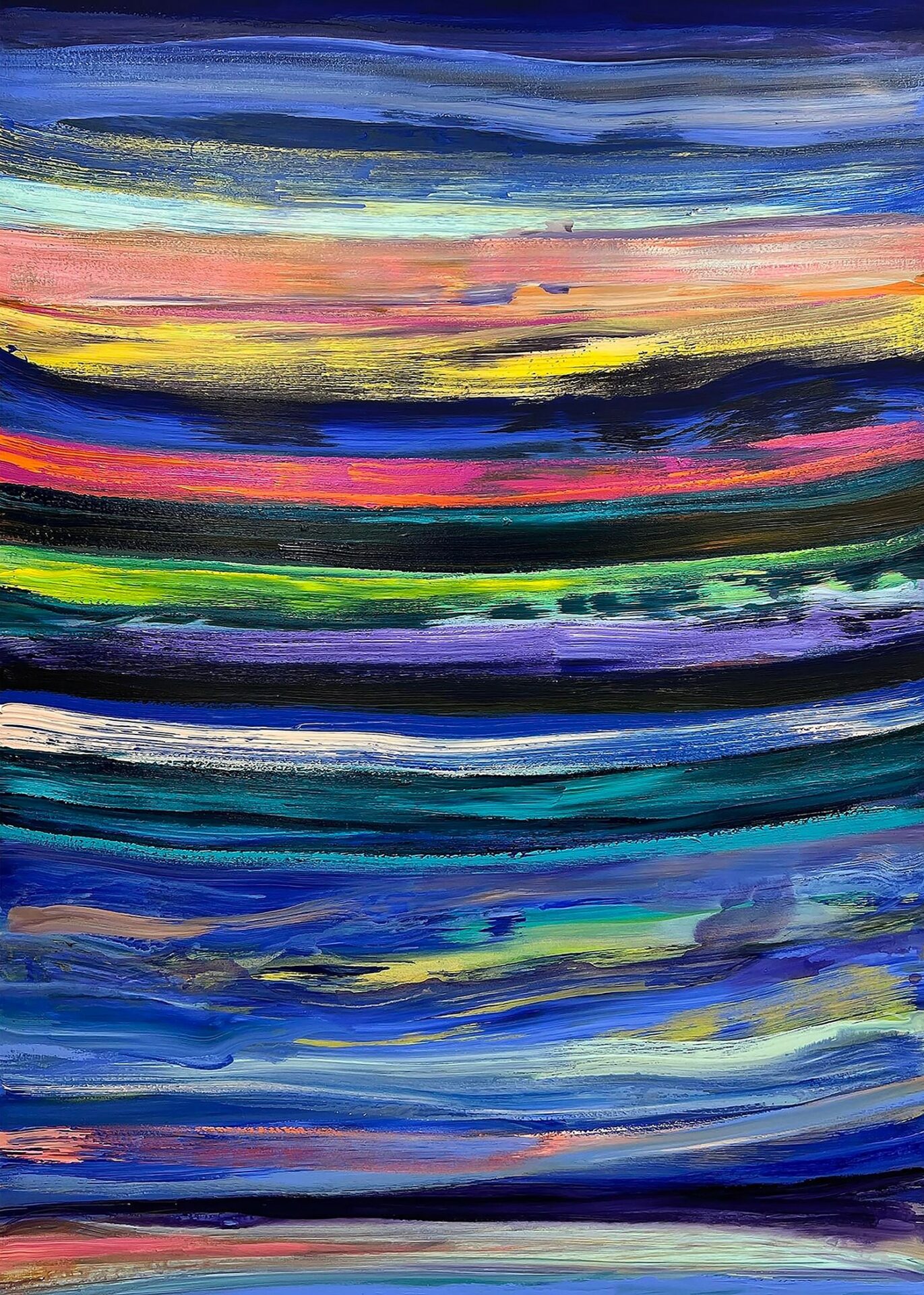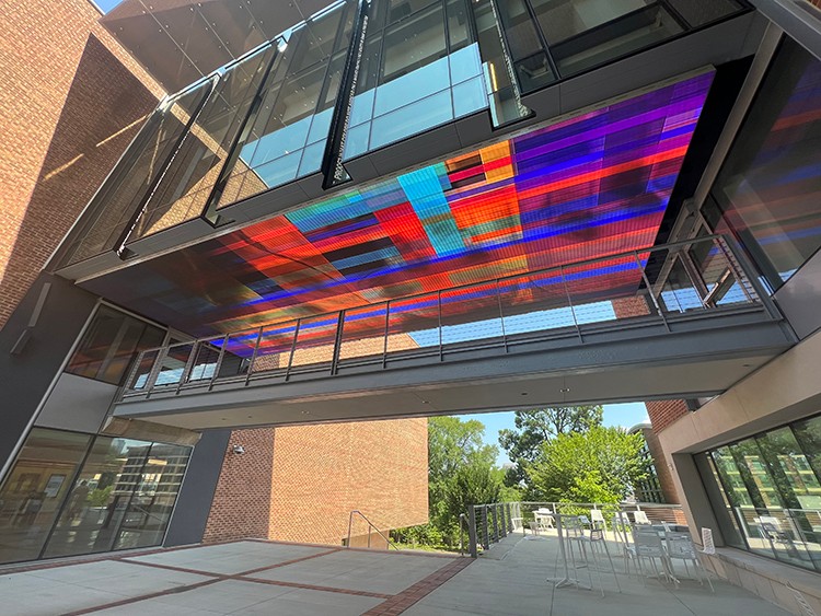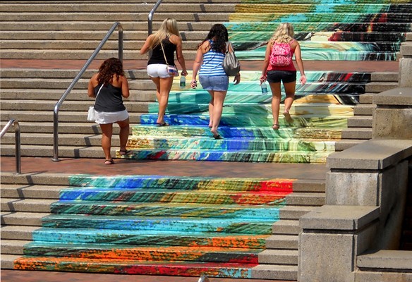 I am an artist who works across platforms. I make paintings on canvas and also translate my painting into other mediums. My paintings have been remade into videos, large-scale installations, and lightworks. My artwork has cascaded down a flight of steps. It has been inside a fountain with falling water, a mosaic on the façade of a fire station, and a transparent composition that covers the side of a building. I am creating a new lens through which the viewer experiences the world. All my work is about gesture, color, and light. I want the viewer to be immersed in my color and to witness how my hand, eye, and body were linked to color and movement when I made the paintings.