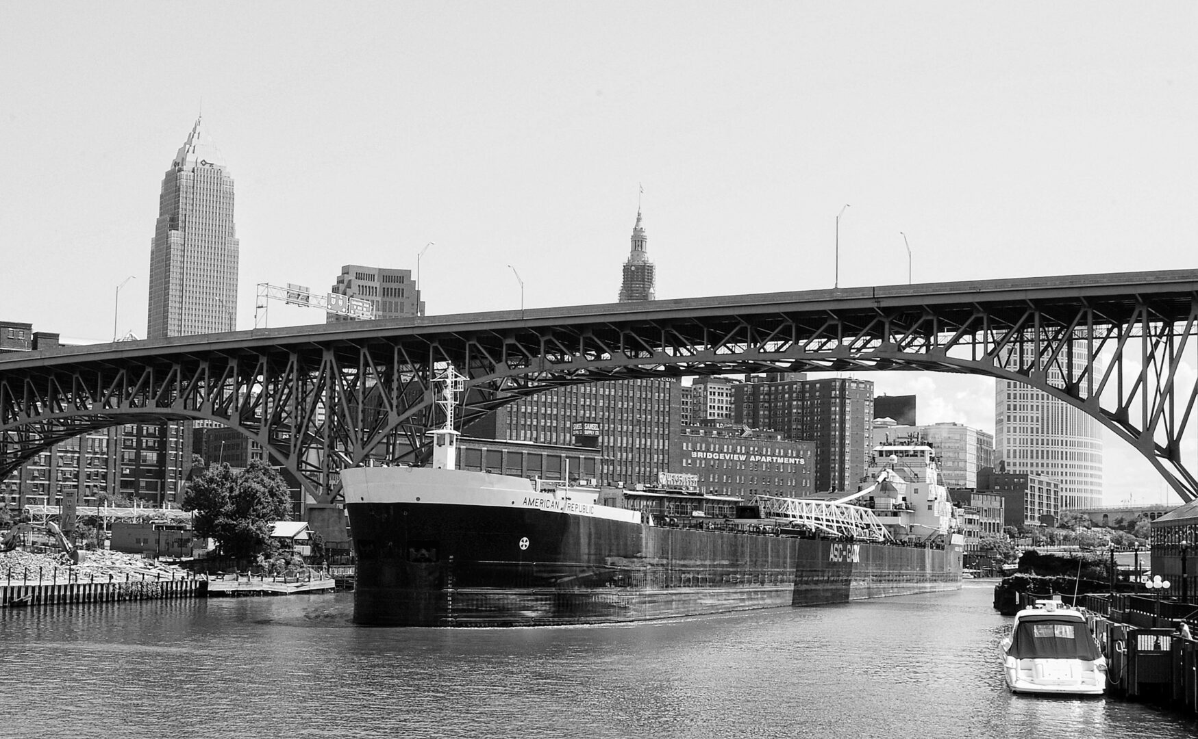 Ore boat on the Cuyahoga River in Cleveland