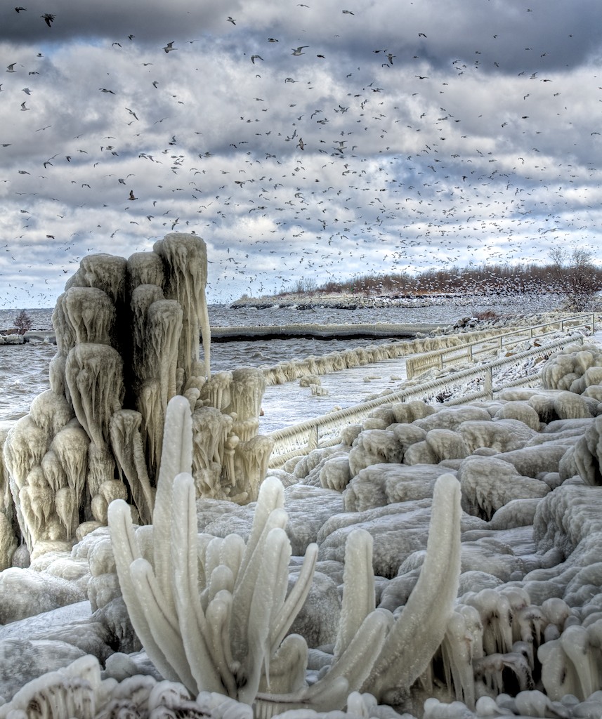 Ice sculptures created by a winter storm on Lake Erie