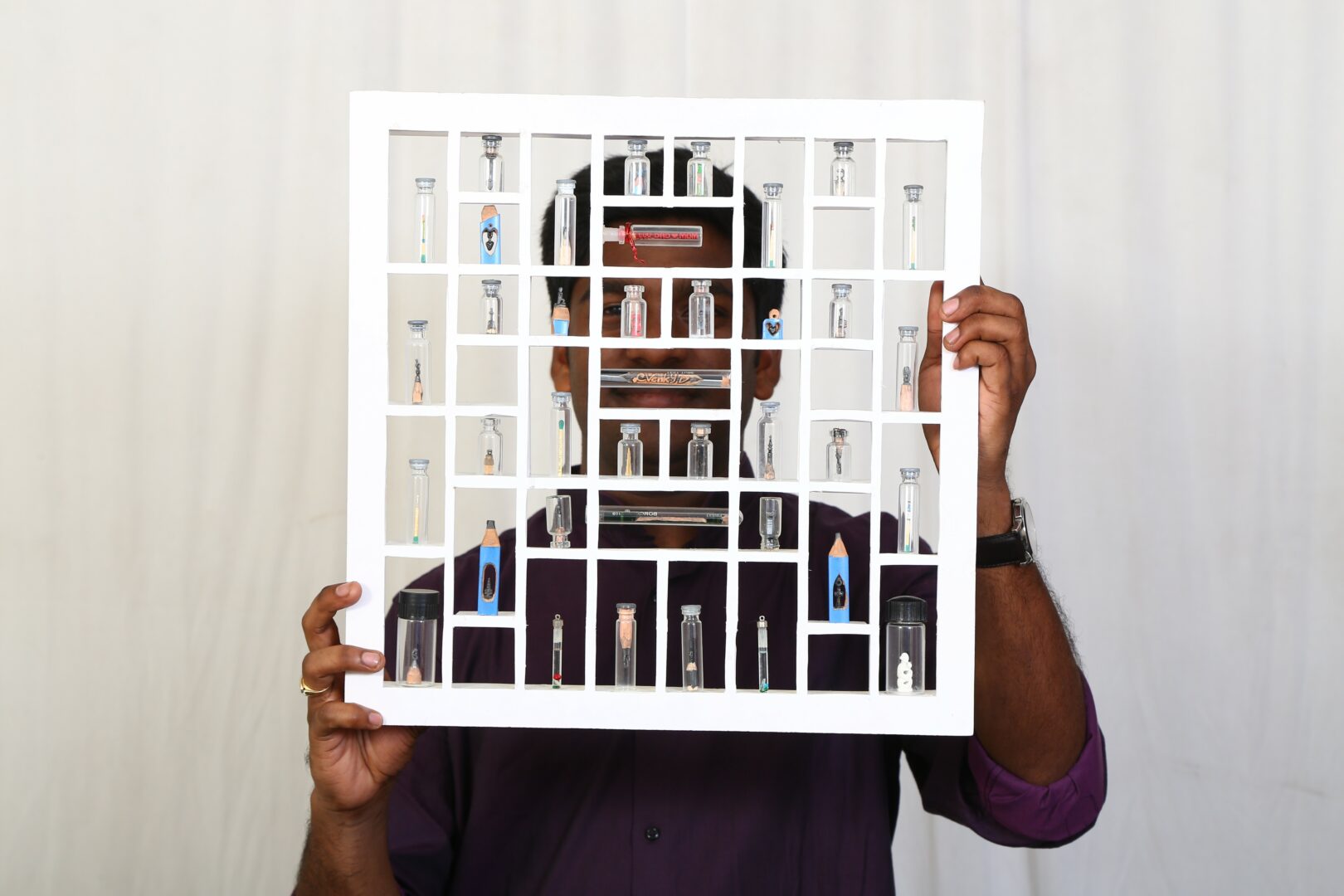 sculptures carved onto pencils and seeds to detailed miniatures of architectural landmarks—embody