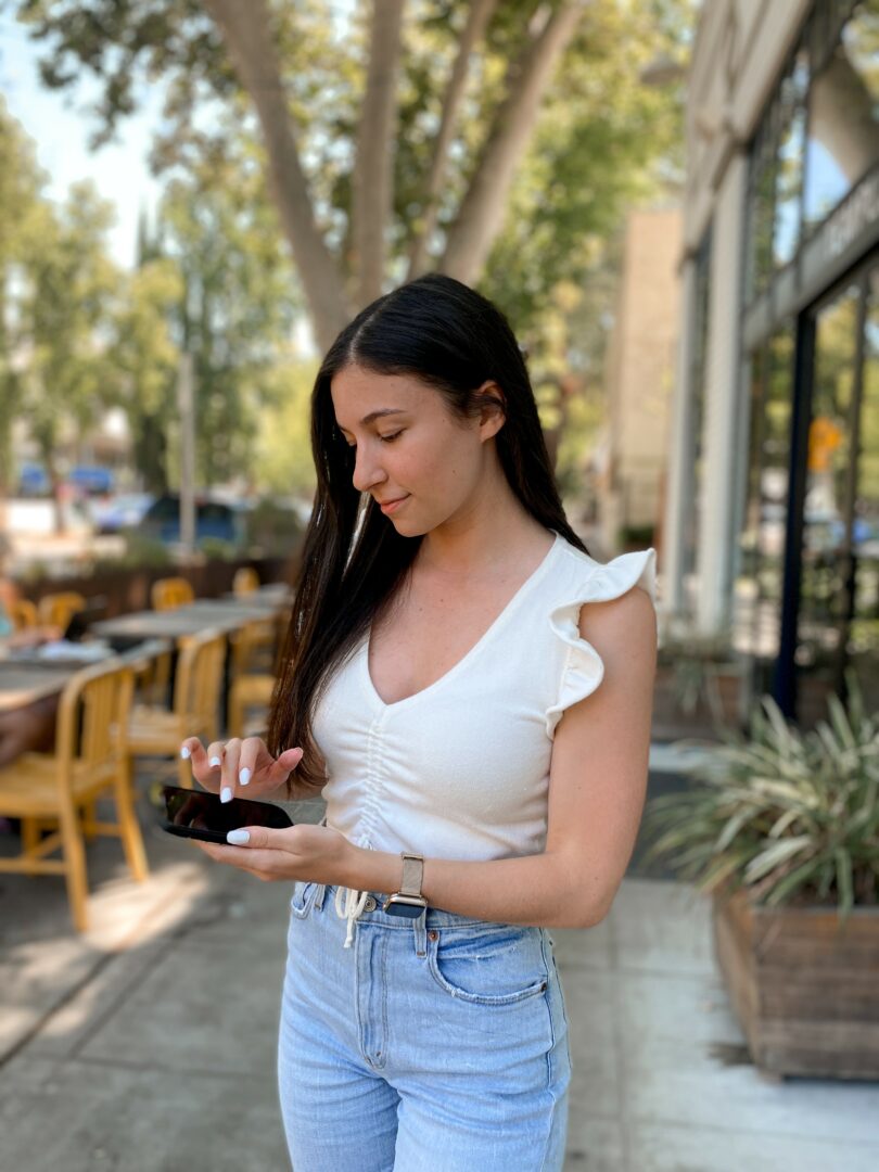 Kassie Maher of Market With Kassie – only for the image with the phone (texting). All other photos are with a tripod.