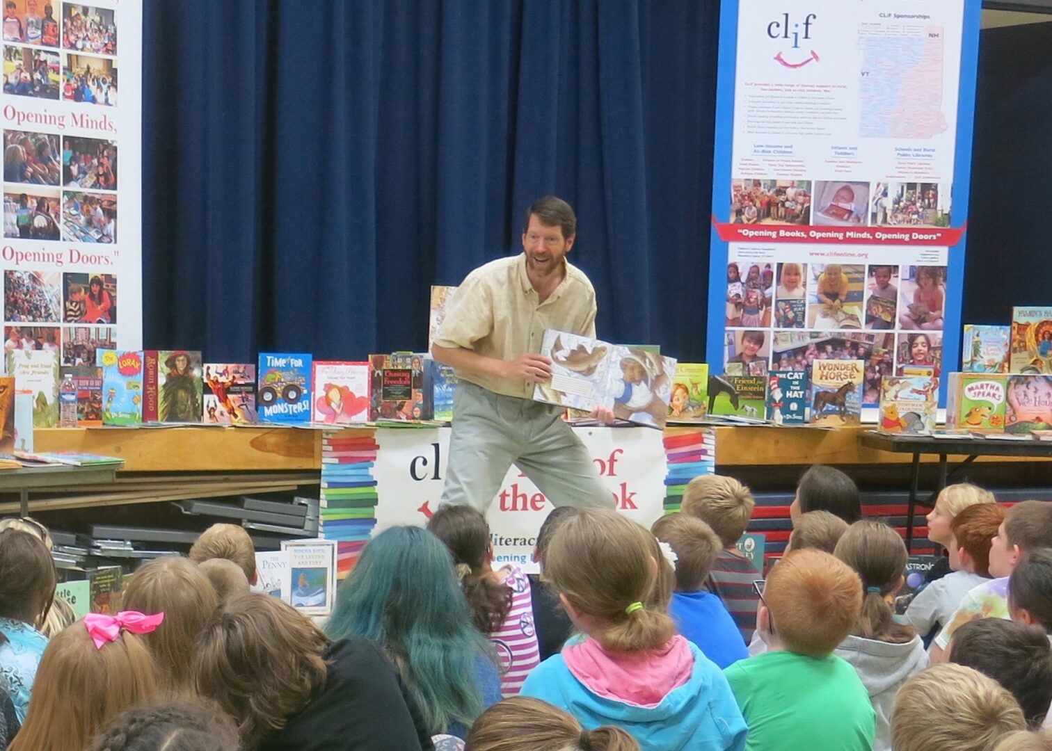 CLiF partners with 50 professional presenters — local children’s book authors, illustrators, poets, storytellers, and graphic novelists — and pays them to travel around the Twin states giving hundreds of inspiring presentations about the power and pleasure of books, stories, reading and writing. After every event children are able to select new, high-quality children’s books from hundreds of titles from a wide range of subjects and genres. Since our founding, CLiF has served more than 400,000 young readers and writers in 425 communities and given away more than $12 million in new books to children who need them the most. All our programs are free. We receive no state or federal funds. Our work is completely supported by individuals, foundations, companies, and social organizations, and we have donors from more than 30 states.