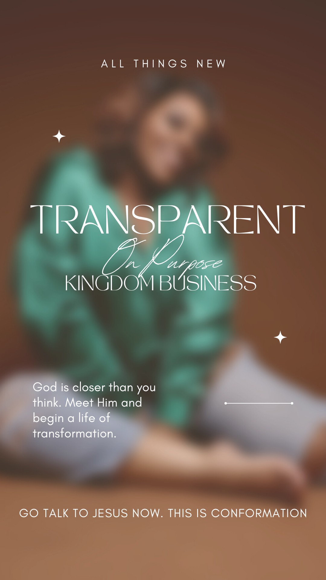 I have an online ministry called, “Transparent on Purpose” and I share my testimonies as well as transparent lessons and biblical revelations that a lot of us want answers to but are afraid to ask and too lost to seek.