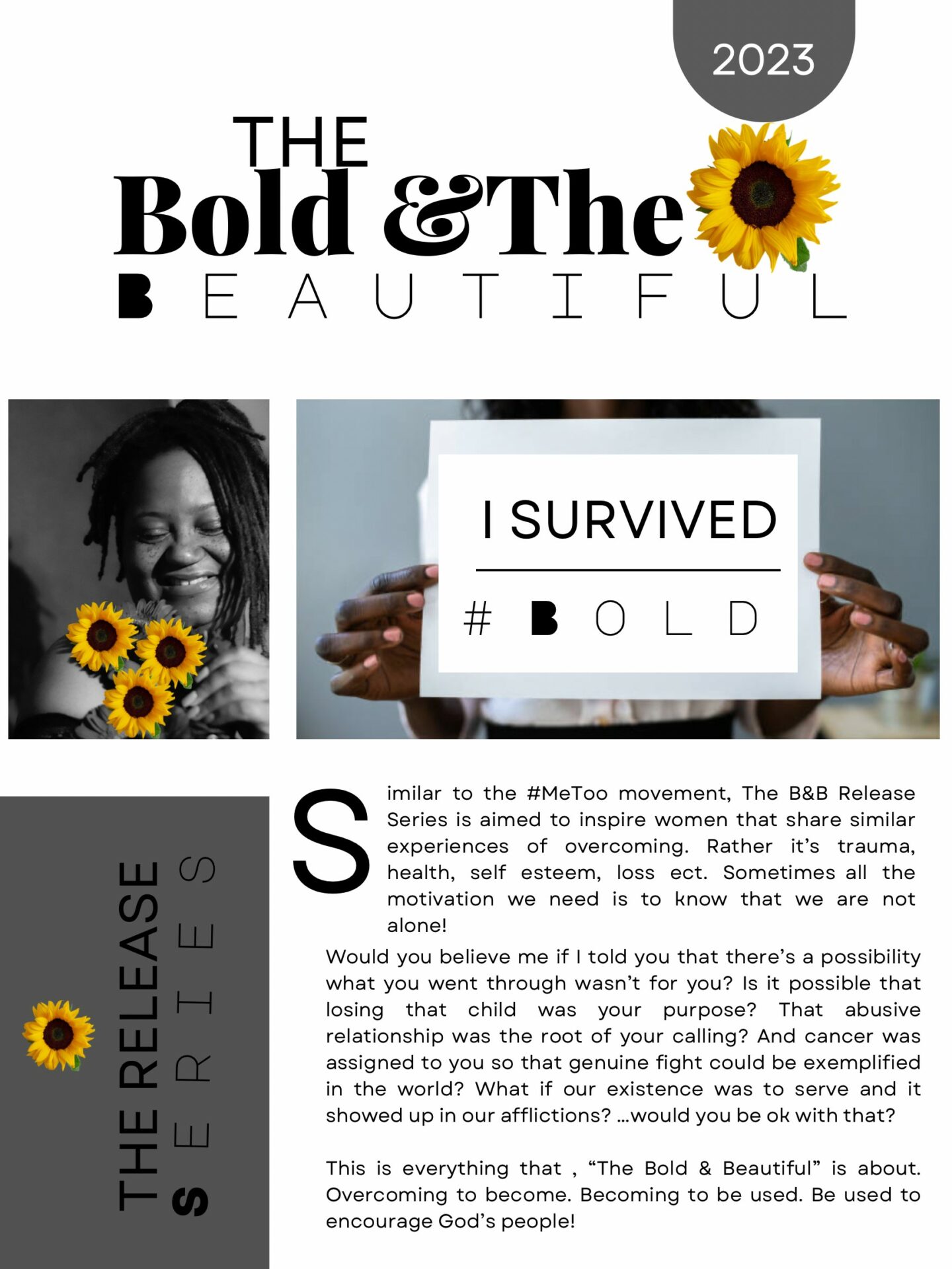 Also, I have a conceptual photography promotional series by the name of “The Bold & Beautiful” This series was designed as a result of my healing journey through transparency, courage and truth! A lot of times we find ourselves stuck in life because we hold on to trauma or false truths and it hinders us from becoming who it is God created us to be! The goal is to exemplify strength and resilience through photography. We have to overcome to become. Become to be used. And be used to save God’s people. That’s love.