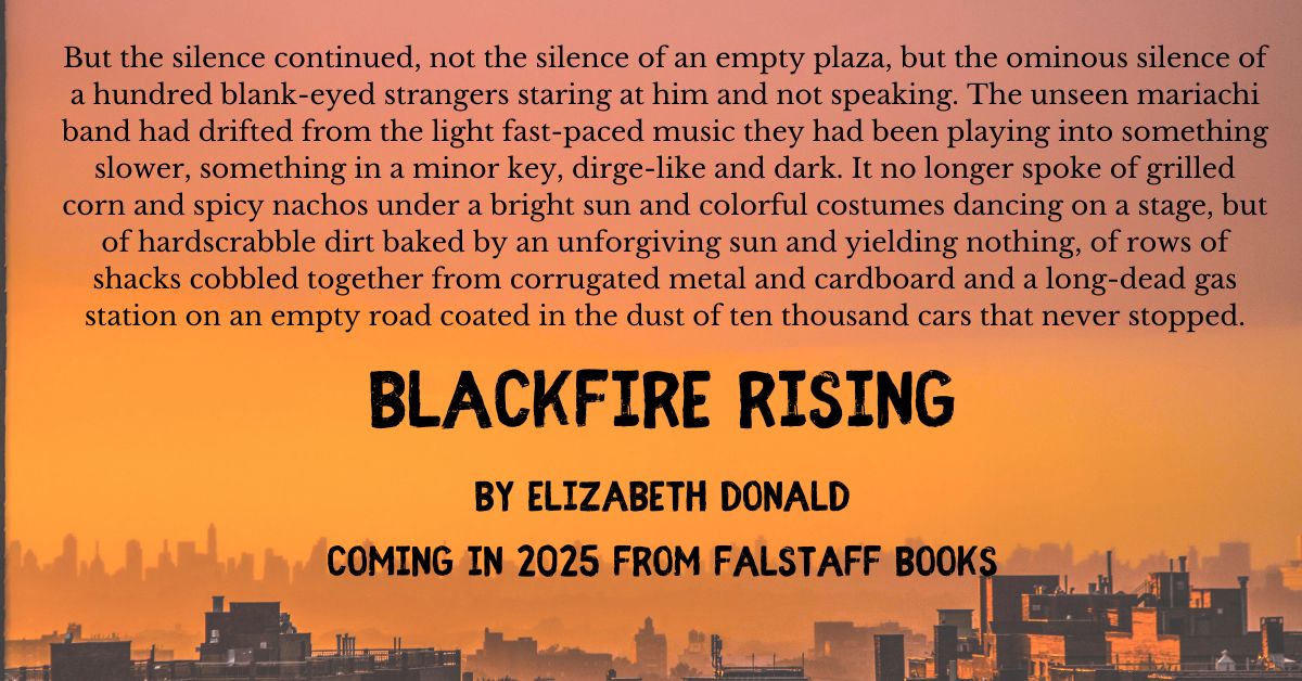 I am a writer. I’ve been writing since I could pick up a crayon, and eventually became a journalist before I became an author. I’ve worked nearly 30 years in journalism, much of it working for daily newspapers. My first novel was published in 2004, and I’ve been publishing regularly since then, mostly with small presses. I love horror and science fiction, but I’ve also played around in fantasy, romance and literary fiction. In 2018, I quit full-time news to go back to school and earn two masters degrees, because why get one masters when you can get two for twice the price? Now I teach composition, creative writing and journalism at area colleges, continue writing news and features freelance, and my latest book is Blackfire Rising, a dark urban fantasy published in April by Falstaff Books. I’m under contract for three more books to Falstaff, and the next one is going to be my first space opera.