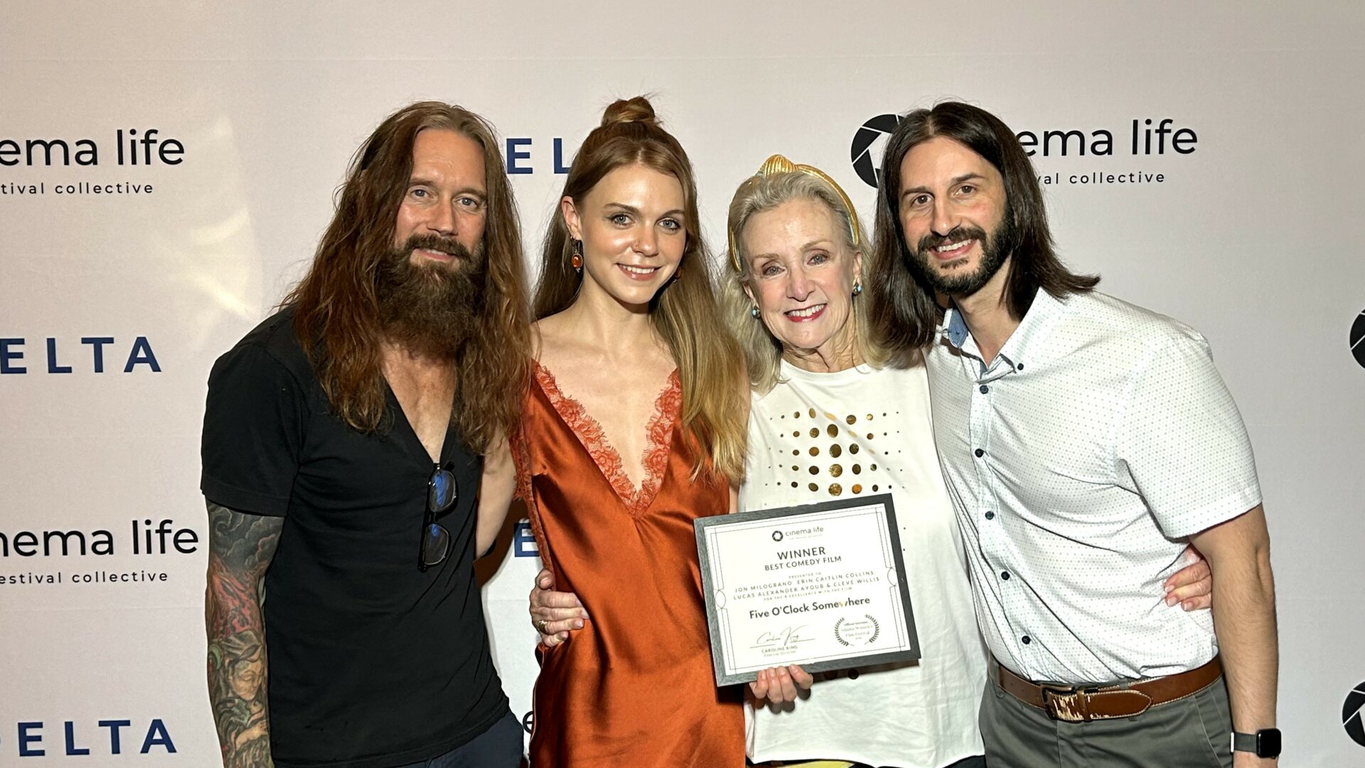 During the writer and actor strikes, I decided to take my creativity into my own hands. I reached out to people in my circle and helped co-produce and build the characters for Five O’Clock Somewhere, a short crime comedy. Jon Milograno wrote and directed it, and Cleve Willis, Lucas Ayoub, Bonny Breuer, and I starred in it. The film went on to win awards at several festivals in Georgia, including Best Comedy at The Atlanta Women’s Film Festival. The response was far more positive than any of us expected. Creating something of my own during such an uncertain time helped me feel empowered and reminded me that I did not have to wait around for Hollywood to give me permission to feel relevant.