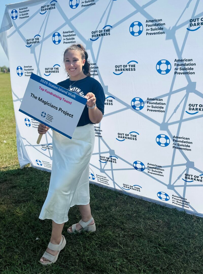 Fundraise – As Executive Chair of the AFSP Staten Island Walk Committee, I lead a team of volunteers in organizing the annual Staten Island Out of Darkness Walk. In my role, I have raised more than $97,000 since launching The Magician’s Project in 2023. I coordinate numerous fundraisers and recruit sponsors whose support directly funds research aimed at better understanding suicide and mental illness. Developing this understanding is vital to building effective prevention efforts that serve our communities for all age groups and demographics.