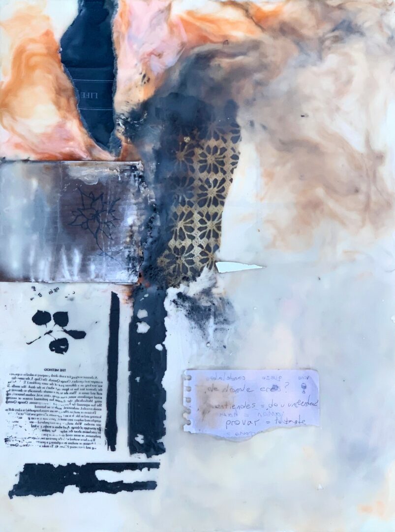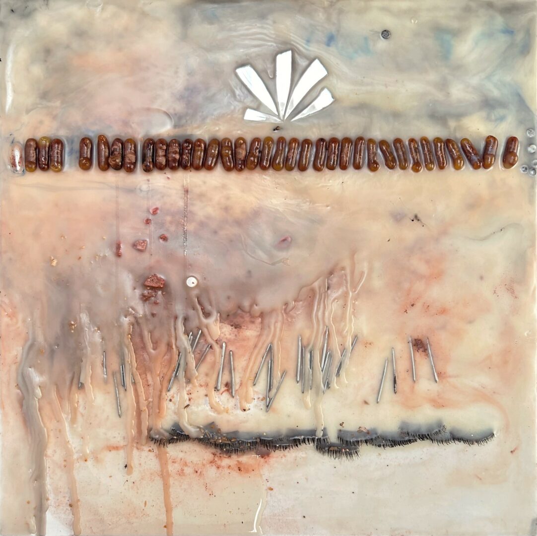 When I began painting, I did representational work in an impressionist style. That’s what I was passionate about at the time. One day I felt called to do something completely different. I had an urge to press a bouquet of dried flowers onto the canvas, add some paint chips and torn journal fragments, and seal everything together with acrylic medium. It didn’t make sense, nor did it relate to anything I had learned before. I wasn’t even sure if it was possible, or “allowed” to make art like that, but I just had to try it. That was the beginning of an ongoing exploration of texture that I’m still excited about more than a decade later. I learned how to work with resin and encaustic wax, which is what I now use primarily. Also, very recently, I returned to painting, though now in an abstract form, completely different from what I was doing fifteen years ago, and I feel that working in mixed media for all these years has definitely informed that sense of freedom and confidence.