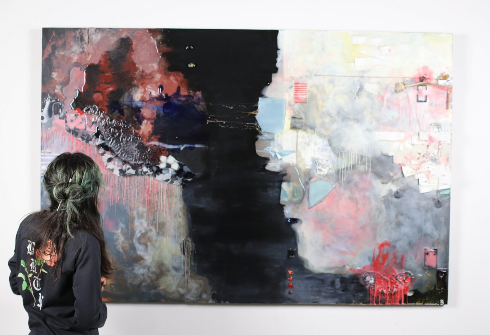 Currently a collection of my mixed media paintings is on view at the Hive Gallery & Studios in Downtown Los Angeles. Something I’m very excited about right now is that I’m about to go to my first artist residency at an art ranch in the desert.