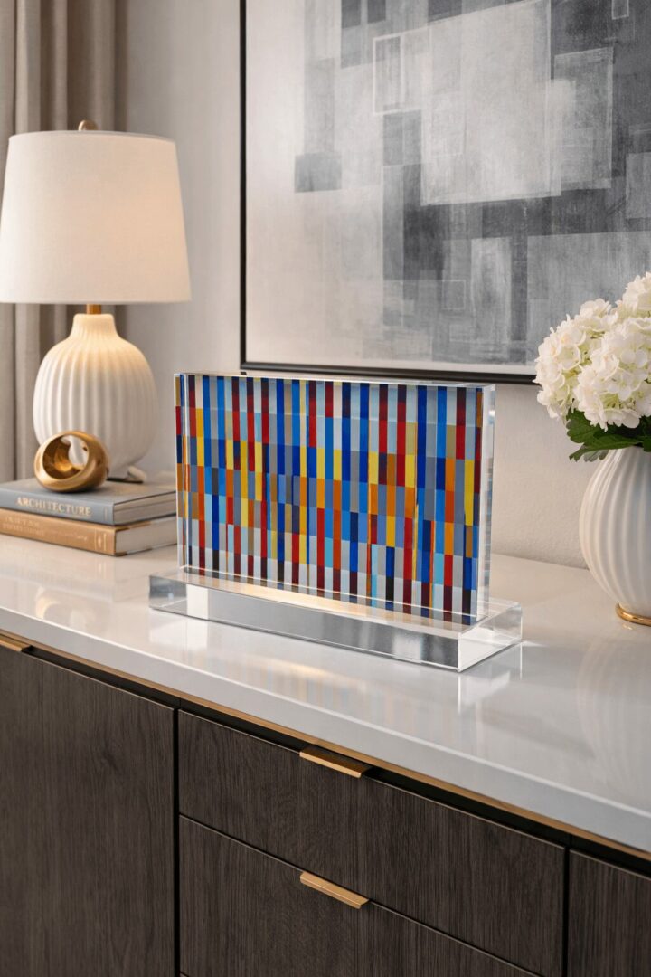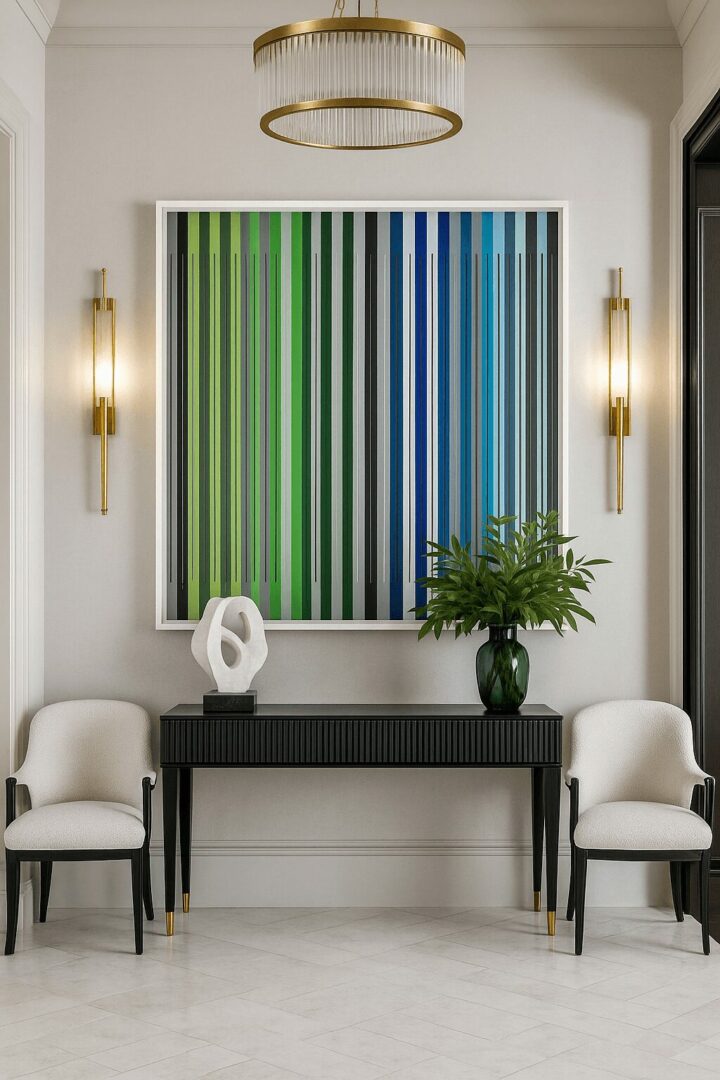 Because my work focuses on geometric abstraction and modern contemporary language, the ideal collector is someone who appreciates clean structures, thoughtful composition, and the expressive potential of color. They are often drawn to modern architecture, contemporary interior design, and spaces where simplicity and sophistication coexist. In those environments, abstract geometric work can create a powerful visual dialogue with the surrounding space.