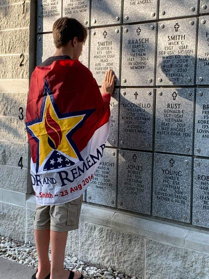 A father’s journey began simply. Soon it turned into a vision. Now it’s become a nationwide movement. On Memorial Day 2008 George Lutz launched the national non-profit Honor and Remember Inc. and unveiled publicly the Honor and Remember Flag, designed to become our national symbol of remembrance for all military who died in defense of our freedoms. It pays tribute to heroes from all wars, even as the POW-MIA flag honors those captured and missing.