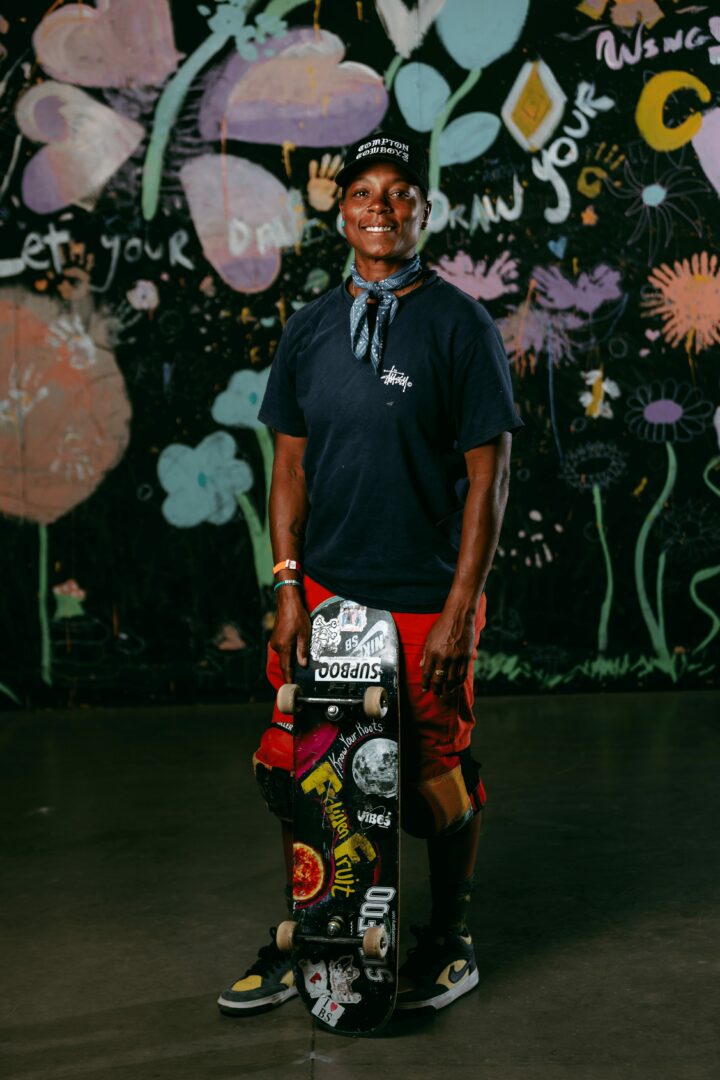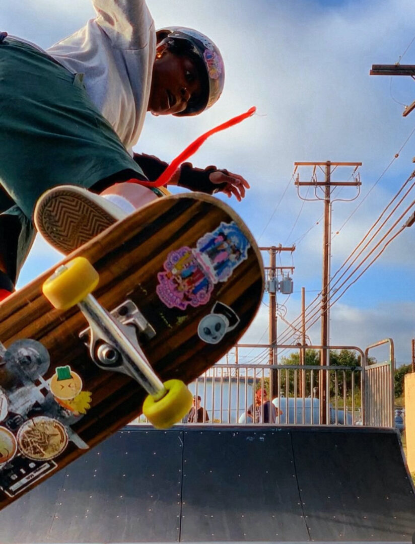 I’m a black queer, surfer, and skater. I feel most excited, and special that I’m a volunteer/ mentor with a non profit by the name of Concrete Queenz. It’s so special because Concrete Queenz is a nonprofit that brings skateboarding and community to underserved girls in South LA through after-school skateboarding programs, trips to local skateparks, and collaborations with other organizations for workshops that support mental health and future college and career options. Our mission is to create a safe and inclusive space for girls to learn and practice skateboarding, while also building valuable life skills such as leadership, teamwork, and communication. We provide free, after-school skateboarding programming once per week per school site with an accessible and inclusive structured model for physical sports activity and resilience-building. This year we have expanded to another school in Compton that we are so excited about as we expand, and bring skateboarding to young underserved girls in South LA. We have an event coming up for one of our schools on Oct. 30th at Monitor Skatepark in Compton, CA. that we are excited about along with other events coming up into next year.