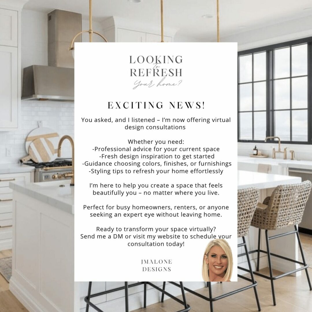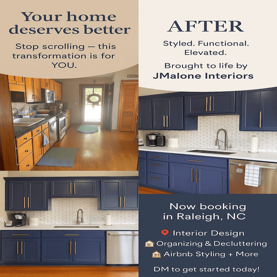 At JMalone Designs, I help people transform their homes into spaces that truly reflect who they are. Whether it’s through full-service interior design, staging for resale, or restyling using what you already own, my goal is always the same: to create beautiful, functional, and welcoming spaces that make life feel easier and more inspired.