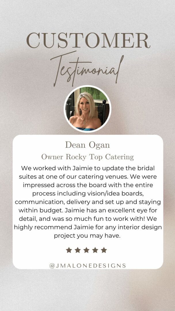 If you’re someone who values integrity, creativity, and providing clients with an elevated experience, I would love to connect. You can reach out to me directly through my website at www.jmalonedesigns.com, or send me a message on Instagram or Facebook @JMaloneDesigns to start a conversation about how we can support each other’s clients and grow together.