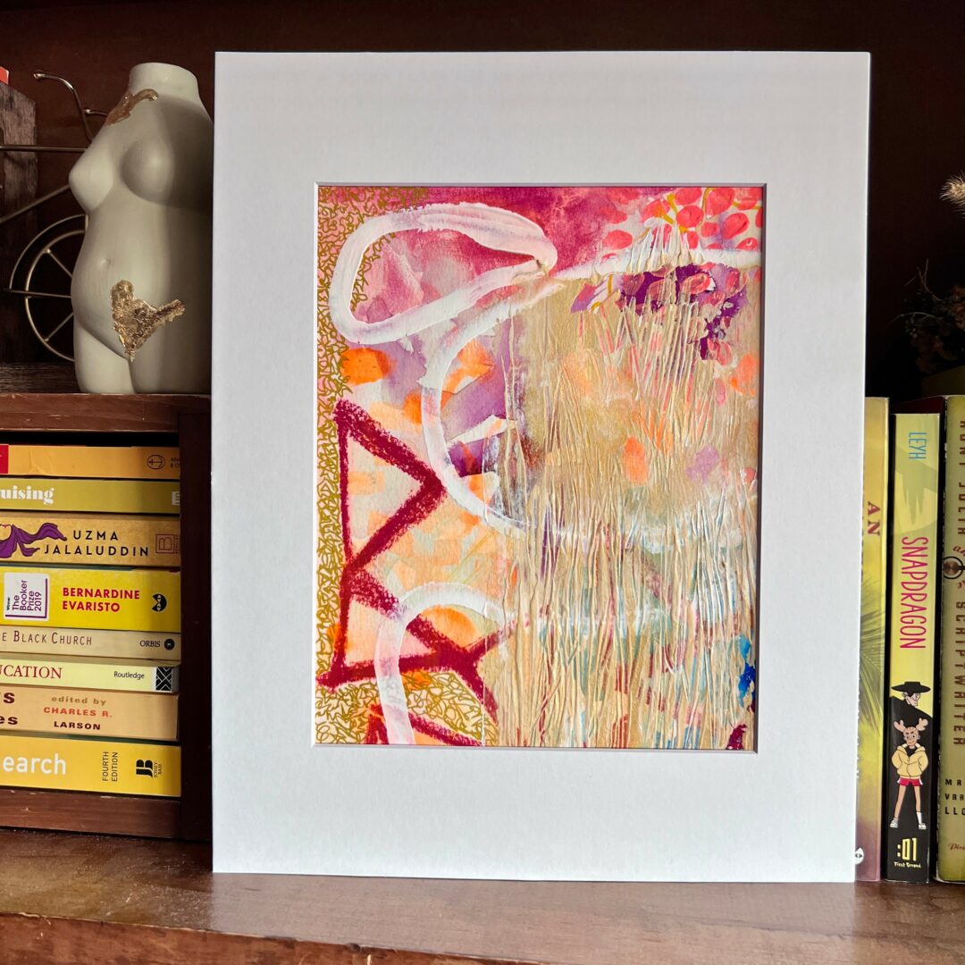 I found a tiny studio. I mean it was really small , around 7’x10”. Daily practice of warming to get my creativity flowing, and then diving into whatever work in progress looked good to me. I’d have 10 paintings going at once to just play and learn about what materials I liked together. The metacognition that followed has changed my life. Through the process of learning my patterns of how I engage with curiosity, I’ve been able to apply how my brain works to other aspects of my life.