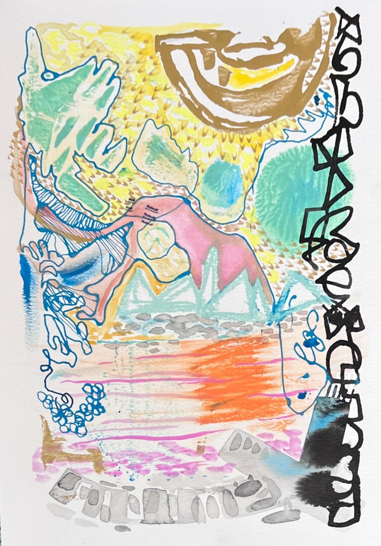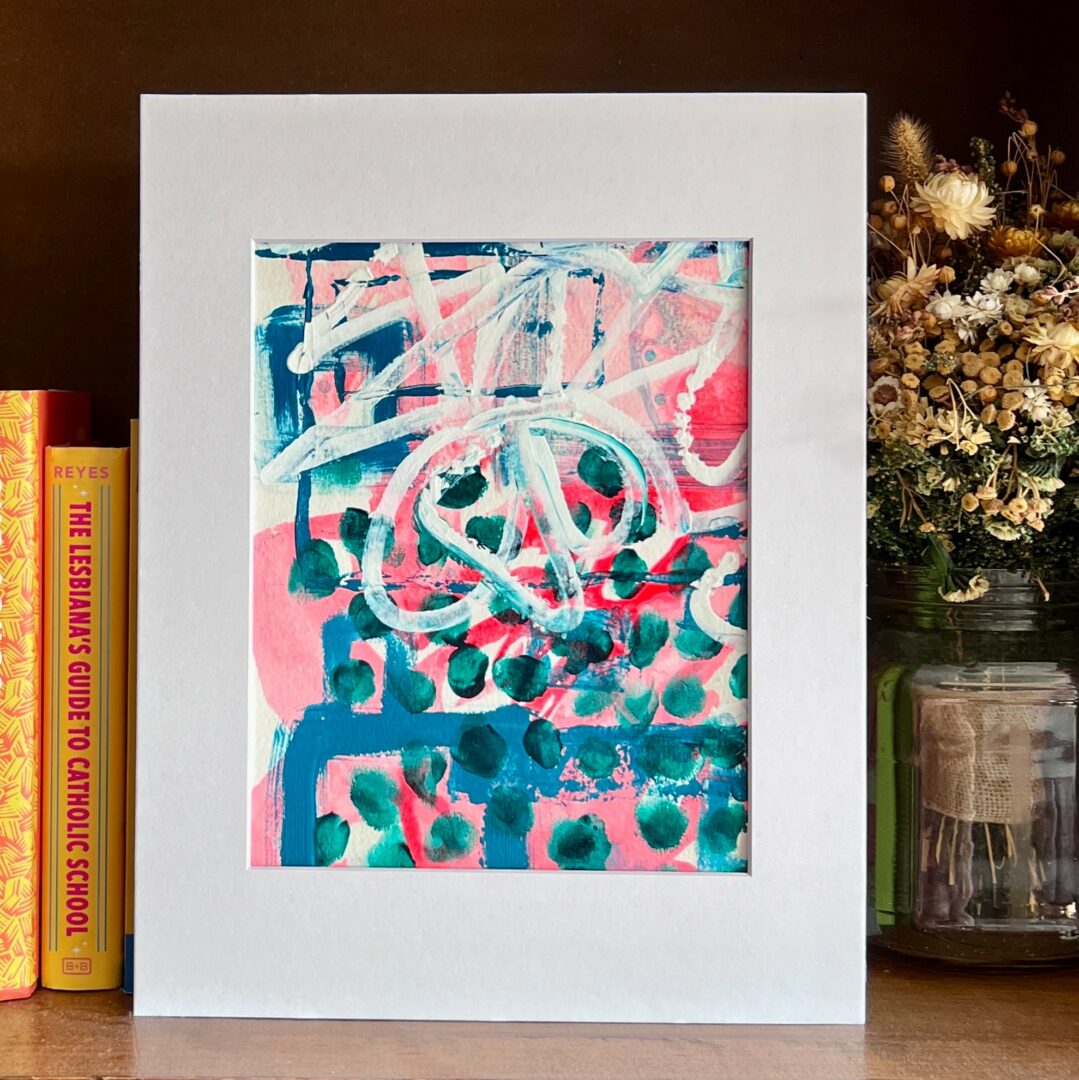 Fast forward to May. Telling your students that you are choosing yourself over them is the hardest thing to do. “I love you all so much, that I am forgetting to love me.” I left teaching. Again. Corporate life is very different, but I leave my work at work. My stress level drops, and my nervous systems starts to regulate for the first time in 15 years. I have energy, not just physical, but creative energy that doesn’t need to go into planning something that will keep 30 11th graders entertained, engaged, and on grade level. I started play with water colors and scraps of paper. I’d paint blobs and then doodle with black paint pens. I loved abstract shapes.