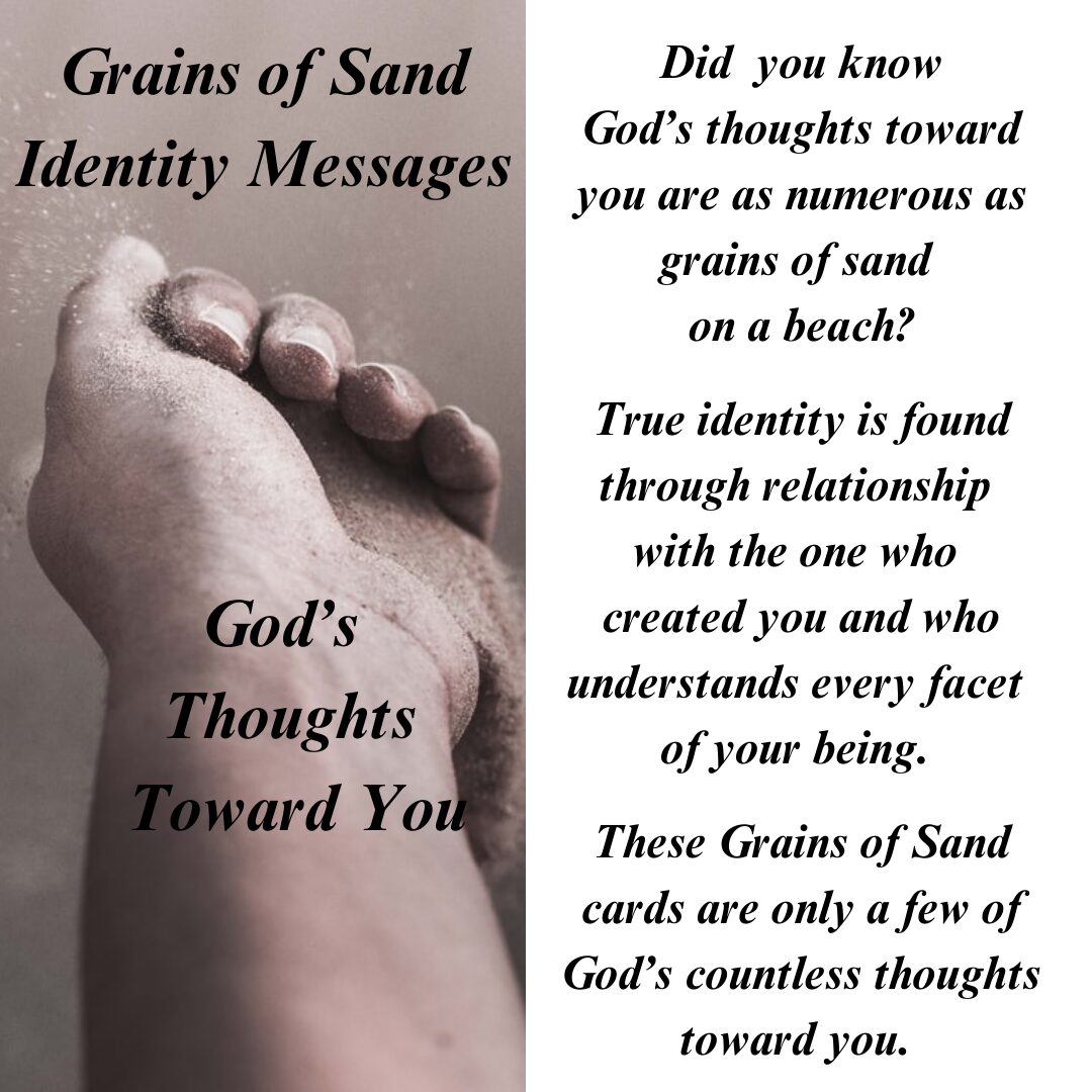 Grains of Sand Identity Messages (see images) brings assurance to those who need to know how much God loves them. With so many seeking to understand their purpose and identity, my hope is to assure them they are deeply loved and fully known by God.