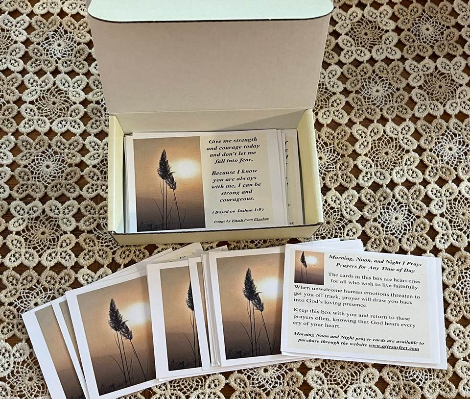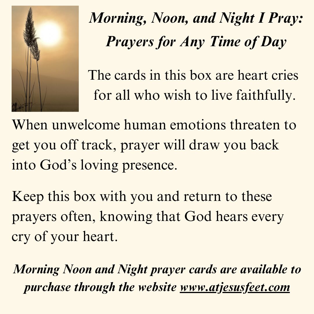 Morning, Noon, and Night I Pray, Prayers for Any Time of Day is a set of prayers based on scriptures. Since many struggle to find words to pray, these cards help bring words to their heart cries.