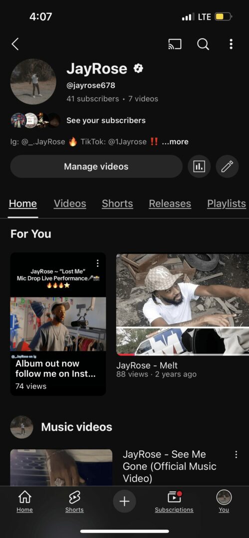 I am an artist and also content creator that goes by the name of JayRose. I think what I do is exciting because I believe this is my purpose and it allows me to be creative in every aspect. If you like hiphop/rap music that’s melodic like Lil Baby, Gunna, Yfn Lucci, Derez Deshon, etc I think you will like my music because I rap about my life and what I’ve been through. Not only do I talk about what I’ve been through i manifest what I want to go through! I’ve dropped 3 projects so far and my latest project is my album called “All On Me” that I dropped in May that has 14 bangers. You can find it on all platforms.