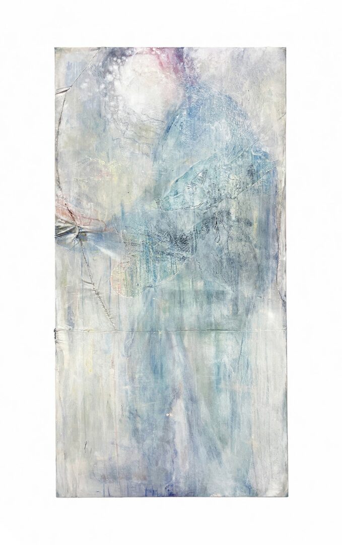 I’m Jean Oh, a visual artist based in New York. My work explores the subtle imperfections and absurdities in life, capturing fragments of memories, emotions, and observations through painting and textile art. What excites me most about my practice is the unpredictability in the creative process—I often blend different materials, like acrylics, house paint, and traditional Korean silk, Nobang, to create layered, textured pieces that shift with time, light, and perspective. Each layering process is different and often unexpected, reflecting the complexity of human experiences and emotions. These elements encourage viewers to question and embrace imperfections.