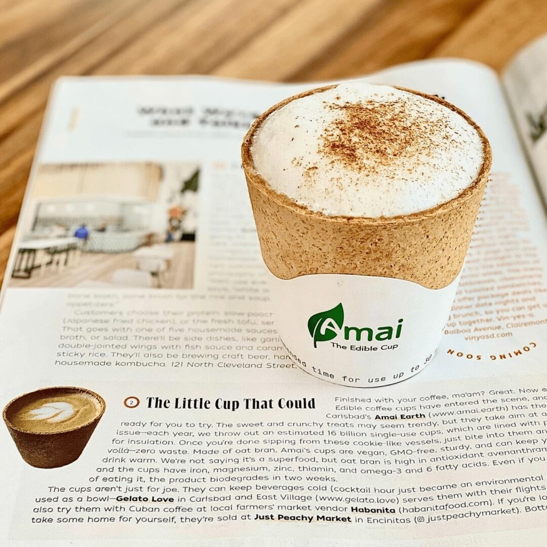 My husband and I became interested in developing an edible cup in 2020, seeing it as a great way to mitigate single-use waste, and we formed our company AMAI (Japanese for “unexpected pleasant surprise”). The name is an homage to my long career at Panasonic and frequent travels to Japan.