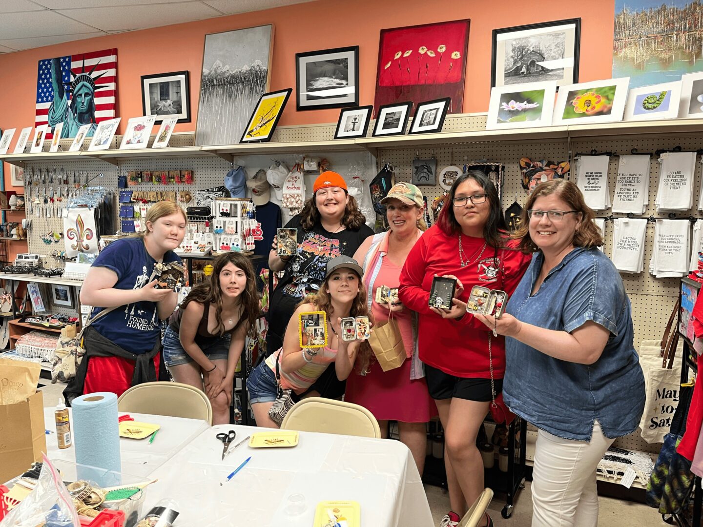 My artisan boutique features my artwork, jewelry, etc… as well as handmade items from more than 60 local artists/makers. We also feature kid artists every month. We host creative workshops, pop ups and sip & shops. Having a place for other local artists to sell their goods, collaborate, and be supported and encouraged has been a dream of mine for some time.