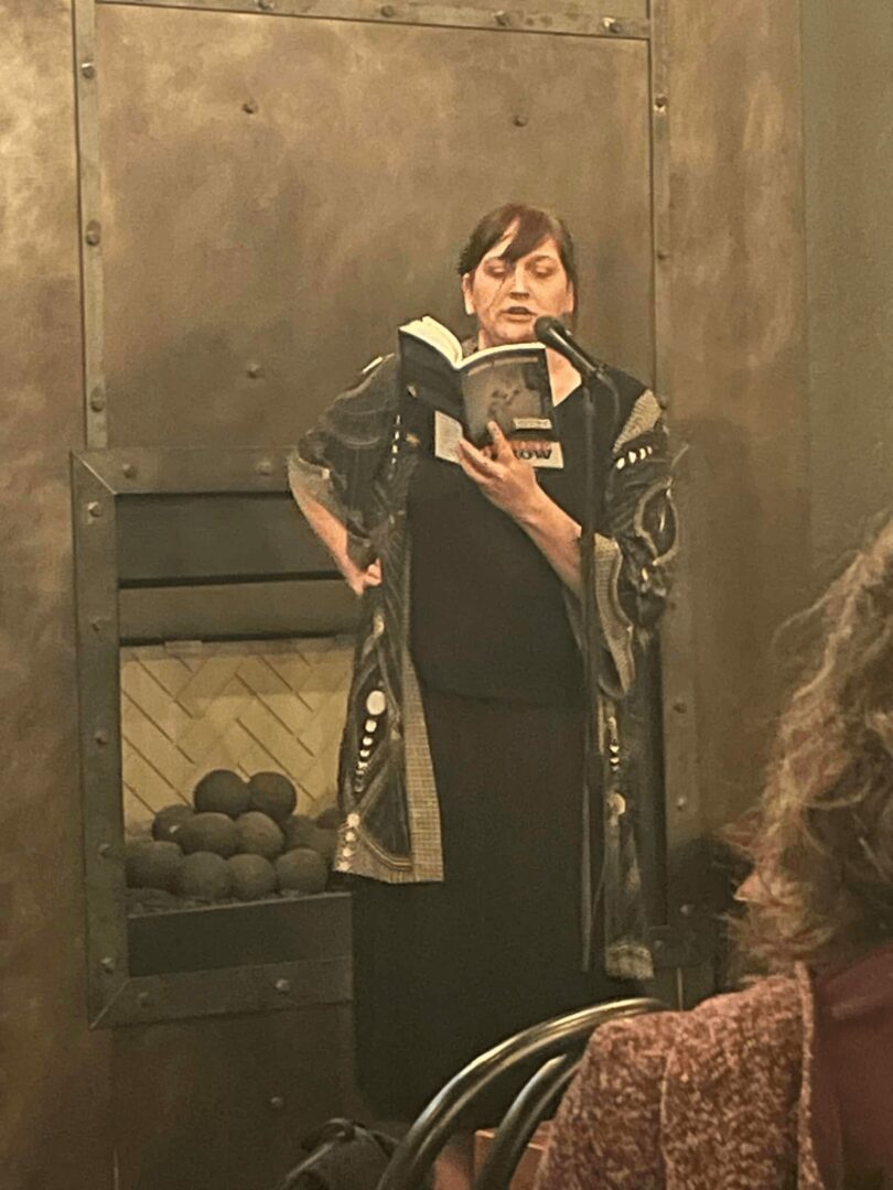 Photo of me reading: Karen Grindler