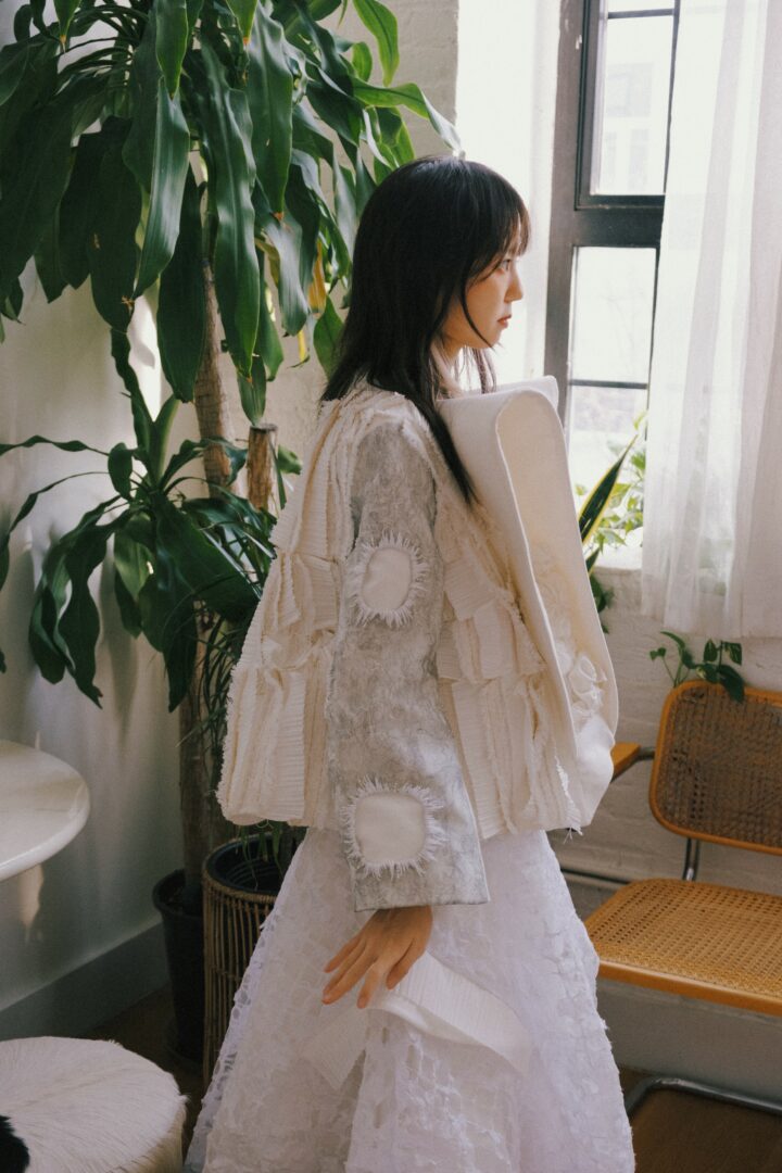 At the heart of my work is the desire to express something quietly internal. A recurring theme in my collections is the idea of “that girl.” Growing up, I always wanted to be that girl—the one who stays composed, handles every situation with grace. But I’ve never really been that way. I sweat easily, get flustered, rush into things. Somewhere along the way I realized: maybe I can’t become her, but I can build her into my work. In a way, she lives through my silhouettes, my textiles, and the moods they create.
